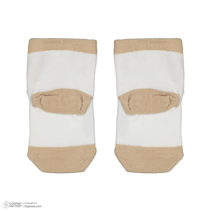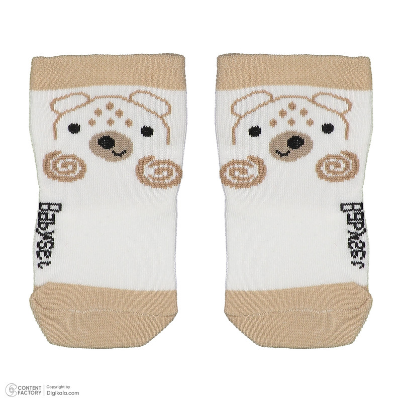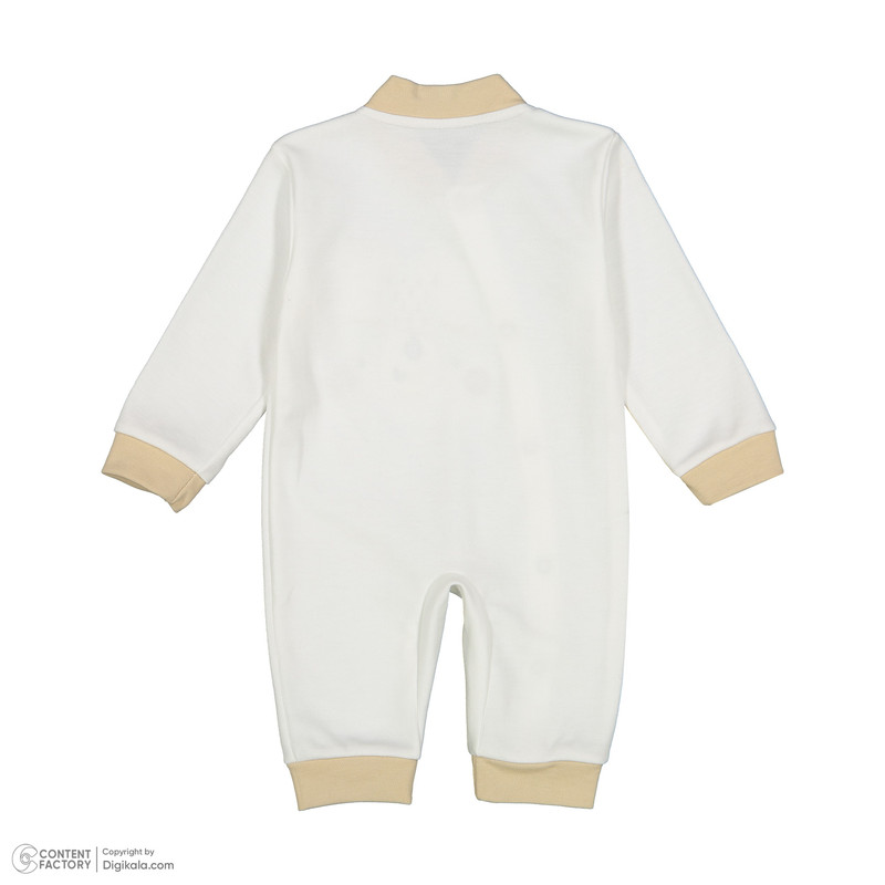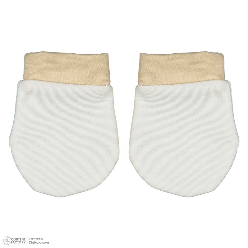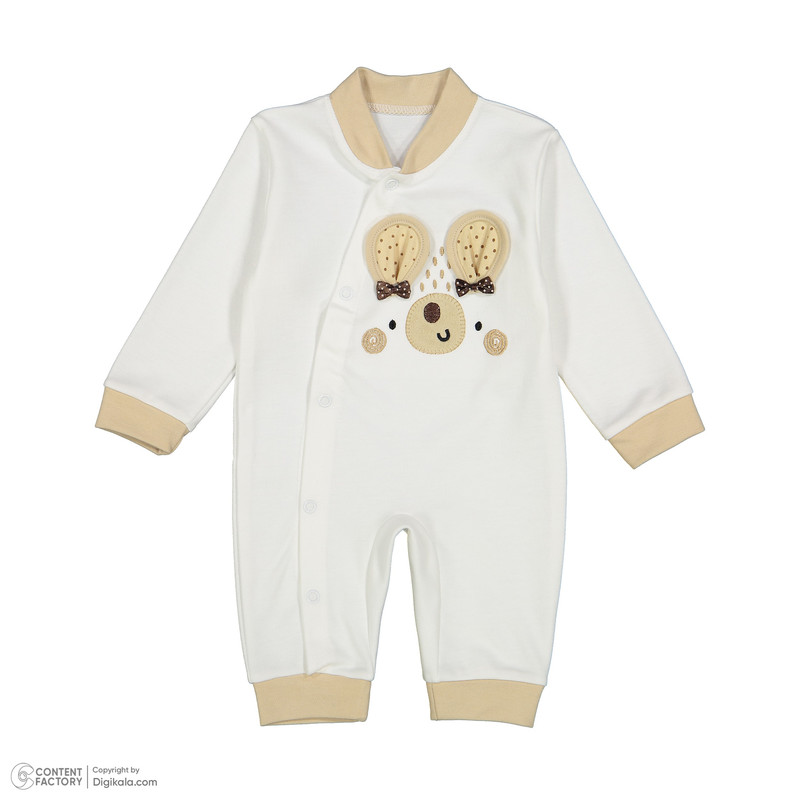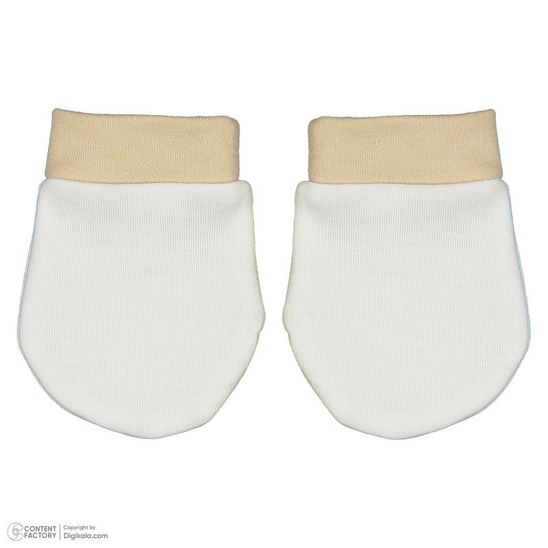 جزئیات : سرهمی سفید جلو دکمهدار با یقه و سرآستین کرم، گلدوزی موش با گوشهای برجسته و پاپیون روی سینه، به همراه کلاه خالدار، دستکش ساده و جوراب طرحدار هماهنگ.
