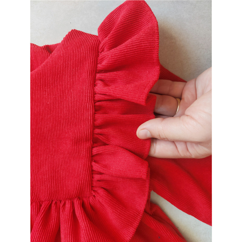این لباس زیبا از جنس مخمل کبریتی بوده و تنخور فوق العاده ای دارد. این لباس دارای زیپ بوده و به راحتی میتوان ان را به کودک پوشاند. یقه لباس بسیار زیباست. میتوان از لباس برای مهمانی ها استفاده کرد. مشخصات کامل و عکس از تمام زوایا گذاشته شده است. رنگ لباس قرمز لاکی بسیار خوشرنگی است.
