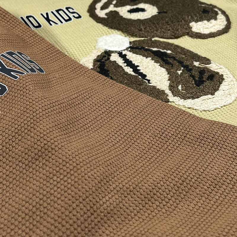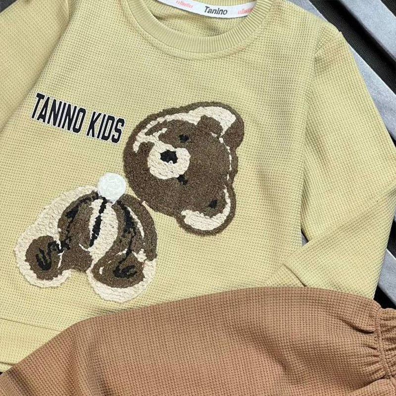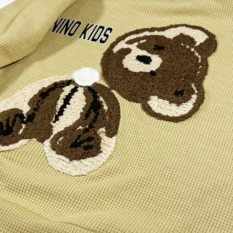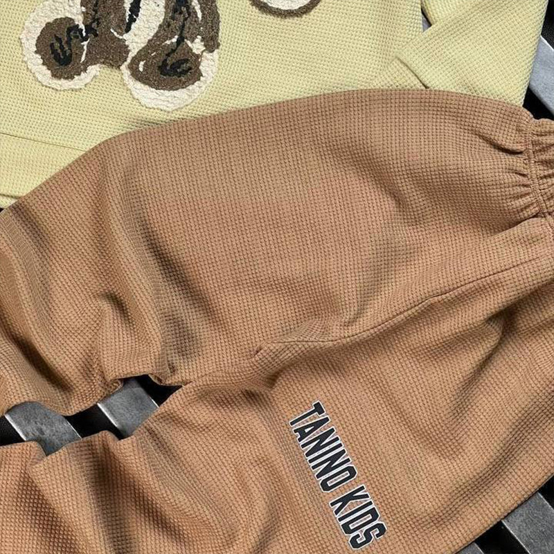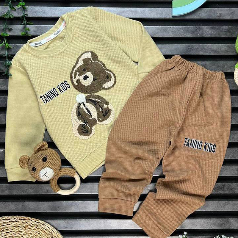 جنس پارچه سویشرت و شلوار پنبه بیسکویتی درجه یک می باشد | گلدوزی طرح خرس در قسمت جلوی سویشرت