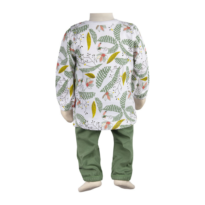 این محصول یک تی شرت آستین بلند مدل طوطی از برند آدمک و جنس 100% پنبه است. یقه این محصول تا سایز 18- 24 ماه سرشانه دکمه دار و سایزهای بزرگتر یقه گرد میباشد. با توجه به راهنمای انتخاب سایز که در قسمت چارت ابعاد آمده و سن نوزاد خود، میتوانید انتخاب درستی برای سایز لباس او داشته باشیدس او داشته باشید