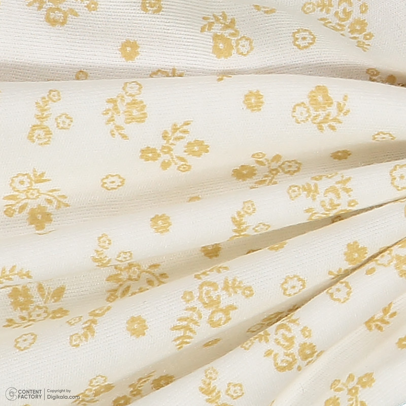 جزئیات : این شلوار نوزادی از پارچه پنبهای باکیفیت دوخته شده و با طرح گلهای ریز کرم روی زمینه سفید، کمر کشی نرم، چیندوزی ملایم و پاپیونهای کوچک در پاچهها، ظاهری لطیف و کاملاً کودکانه دارد.