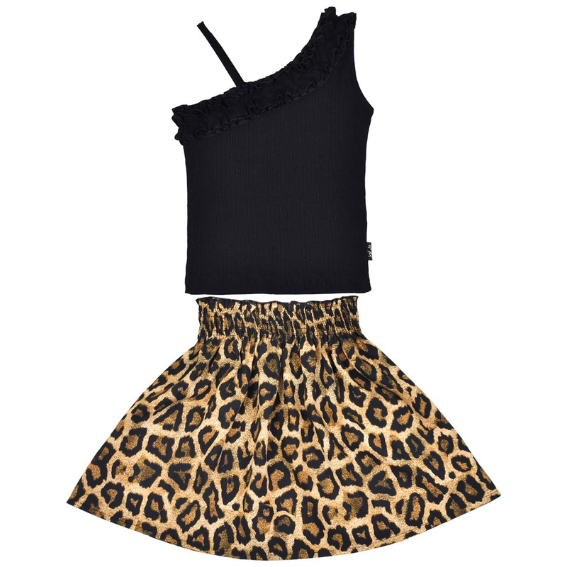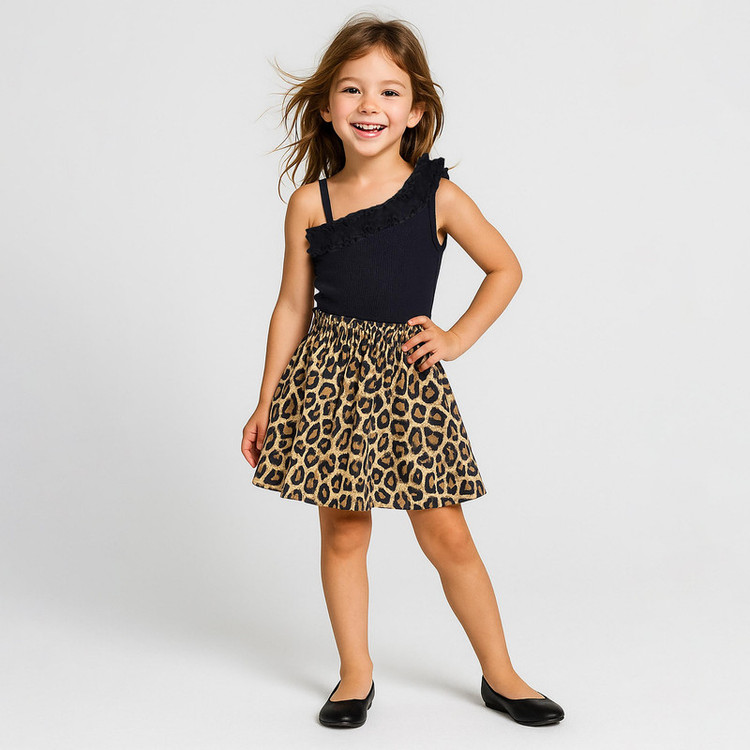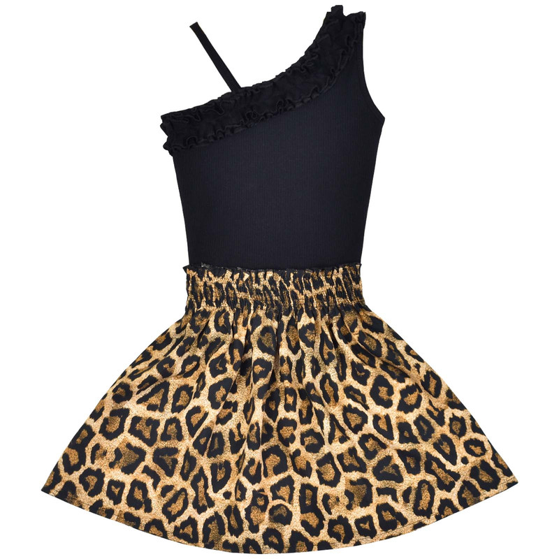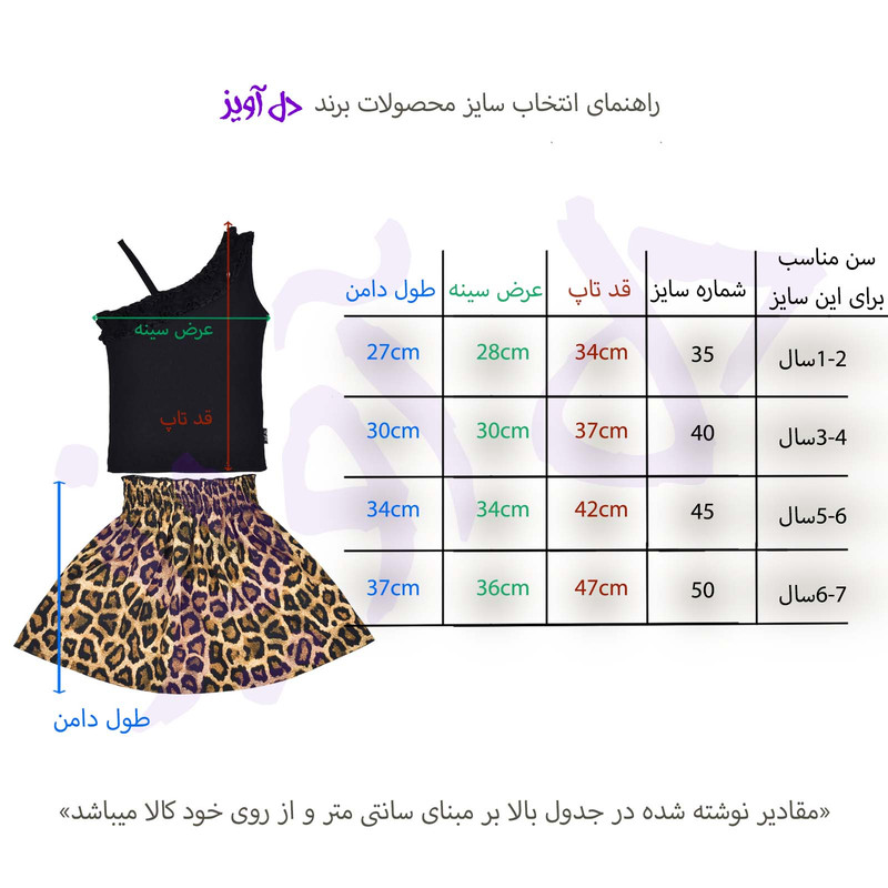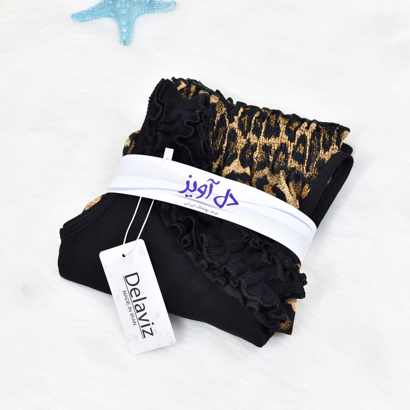 تاپ با طرح یقه رومی چین دار و دامن نخی طرح لئوپارد(پلنگی) کمر کشدوزی