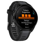 در مرحله اول صفحه نمایش این ساعت از نوع AMOLED شده که شفافیت بالا و تراکم پیکسلی بسیار مناسبی دارد . سپس گارمین که همیشه برای نگهداری شارژ بیشتر تلاش میکند، باطری Forerunner 165 را ارتقاع داده و تا 11 روز در حالت اسمارت واچ (یعنی بدون تمرین و اتصال جی پی اس و بلوتوث) باتری نگه میدارد . همچنین در مقایسه با مدل قبلی سنسور های جدیدی به این ساعت اضافه شده ازجمله سنسور اکسیژن خون یا Pulse OX و سنسور ارتفاع سنج بارومتریک BAROMETRIC ALTIMETER و سنسور قطب نما COMPASS و دماسنج THERMOMETER و سنسور نور محیط AMBIENT LIGHT SENSOR که کارایی این ساعت را بهبود بخشیده . همچنین قابلیتهای نرم افزاری جدید بسیار زیادی به این ساعت اضافه شده از جمله :