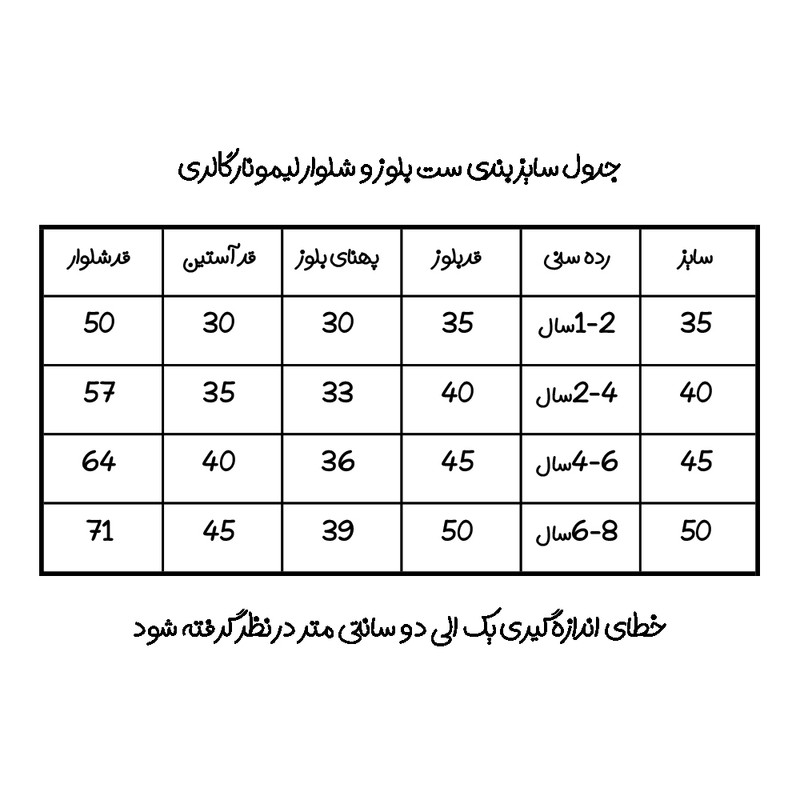لطفا قبل از نهایی کردن خرید،جدول سایز را حتما مطالعه فرمائید.