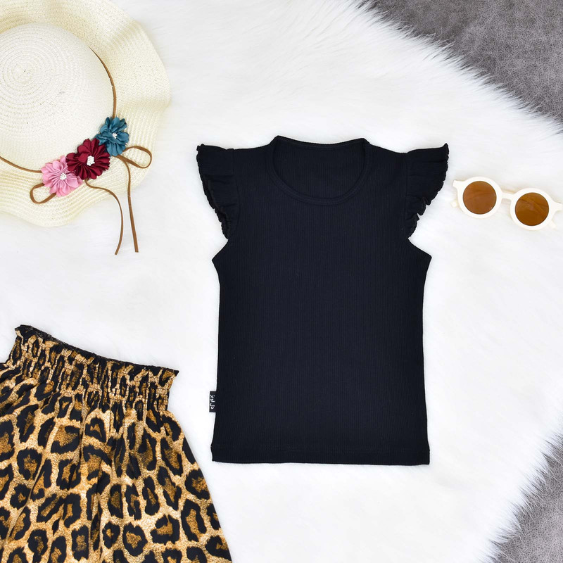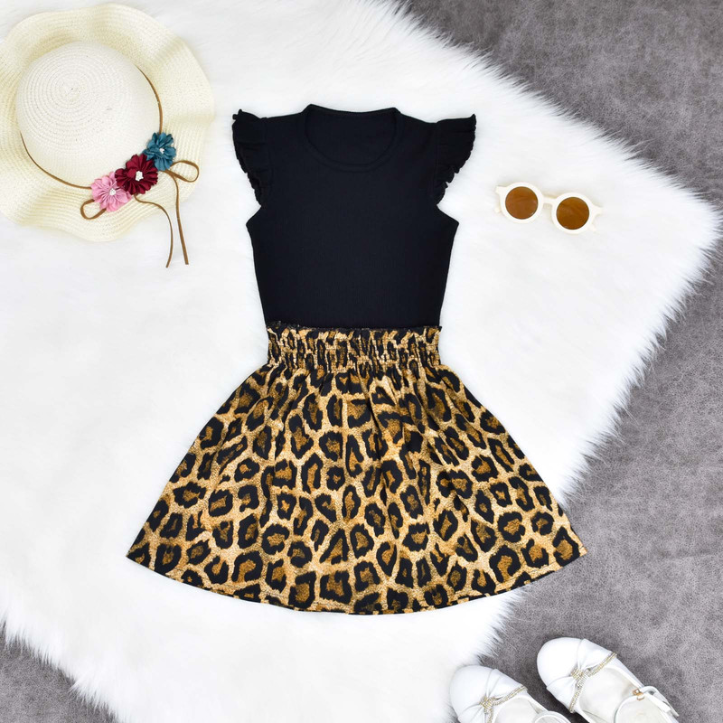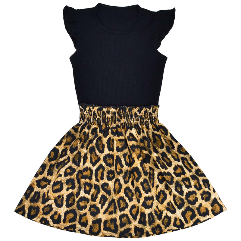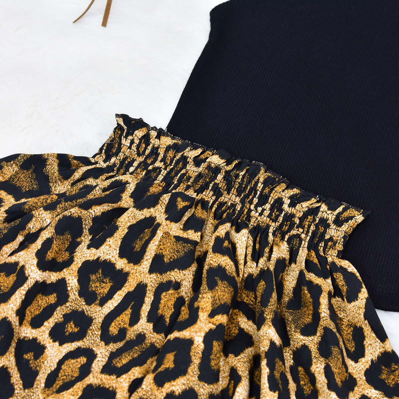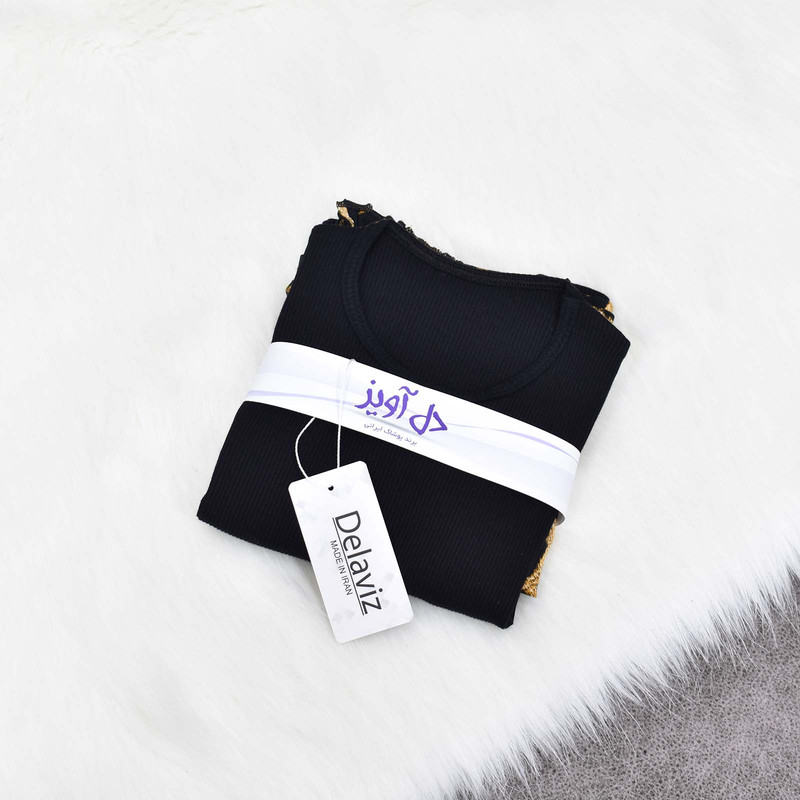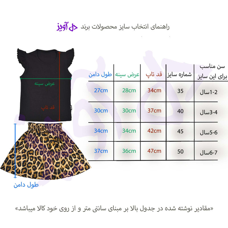 تاپ آستین چین دار مشکی به همراه دامن نخی طرح لئوپارد(پلنگی) کمر کشدوزی شده با قابلیت کسشانی بالا