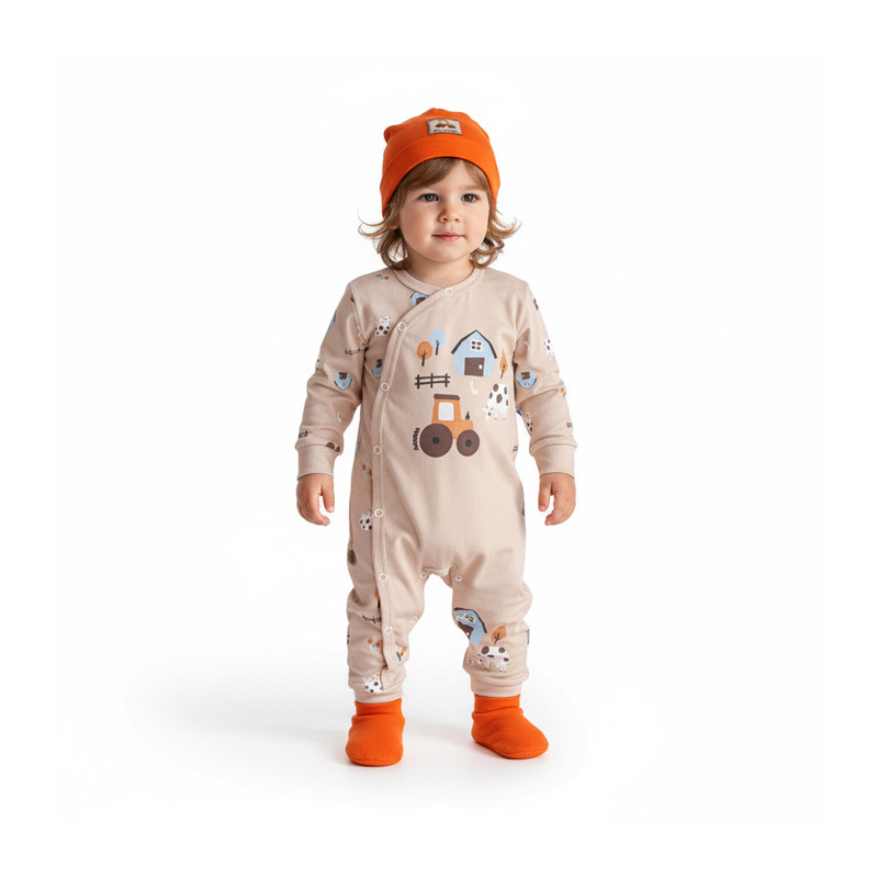 لباس سرهمی مچدار برند «آدمک» مدل مزرعه یک سرهمی یکسره 100 % پنبه است. . این سرهمی یقهای گرد دارد و از الیاف نخ پنبه تولید شده، از لطافت قابلقبولی برخوردار است و تنخور بسیار زیبایی دارد.. با توجه به راهنمای انتخاب سایز که در قسمت چارت ابعاد آمده و سن کودک، میتوانید انتخاب درستی برای سایز لباس او داشته باشید