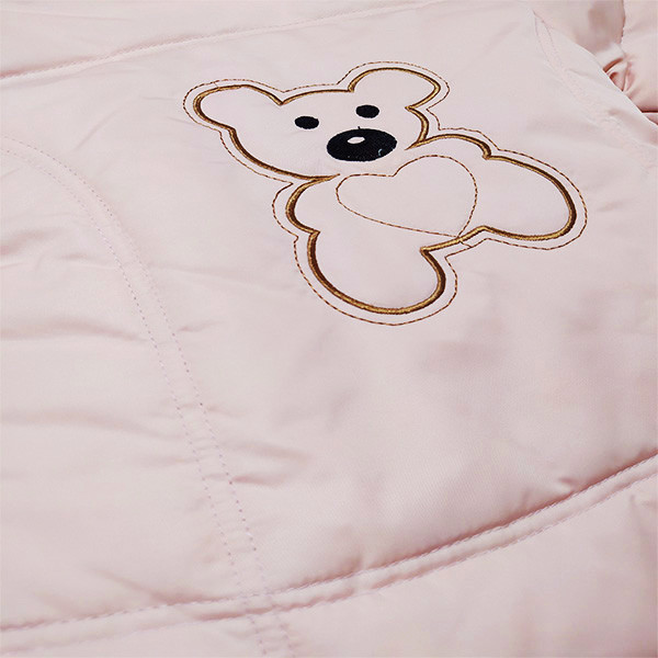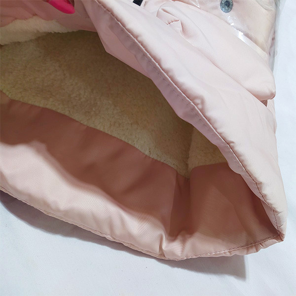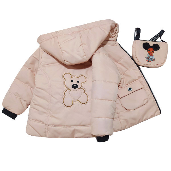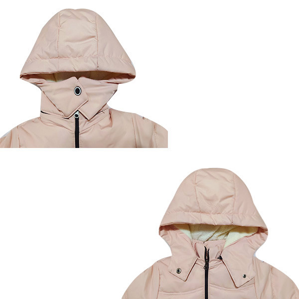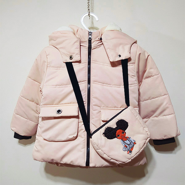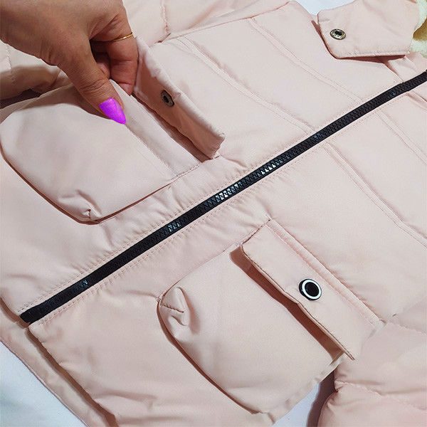 دارای کیف زیپ دار دارای دکمه و زیپ برای پوشش کامل گردن کودک دارای کلاه جداشدنی دارای گلدوزی پشت کاپشن و دو جیب دکمه دار در جلو سرآستین ها کشبافت برای جلوگیری از نفوذ سرما