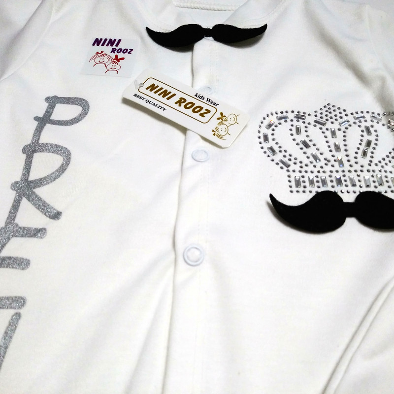 ست سرهمی و کلاه نوزادی پسرانه نی نی روز طرح پرنس کد M449