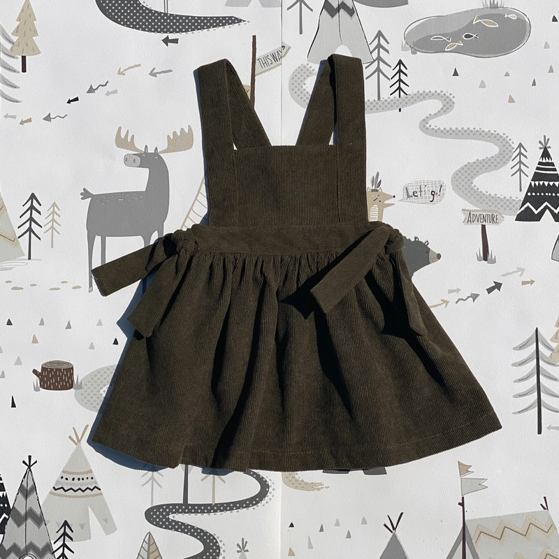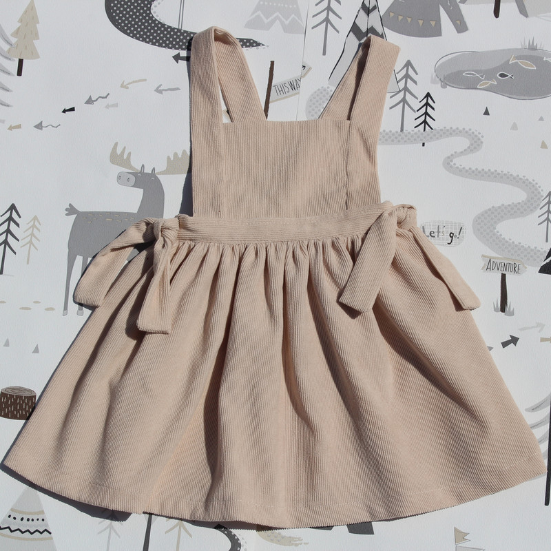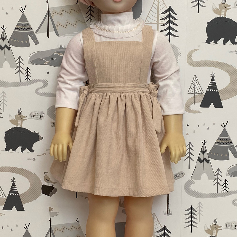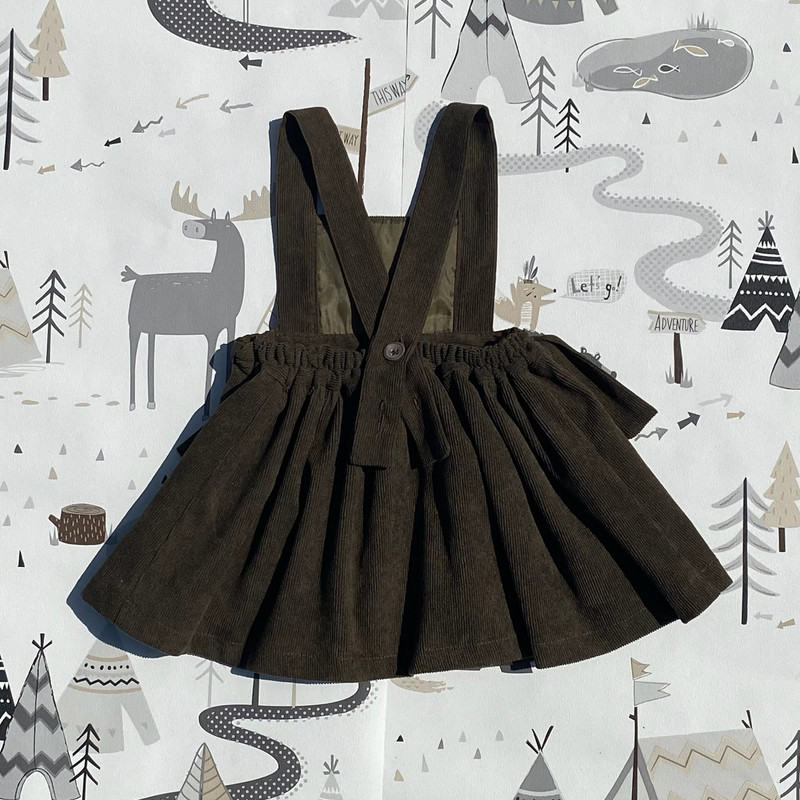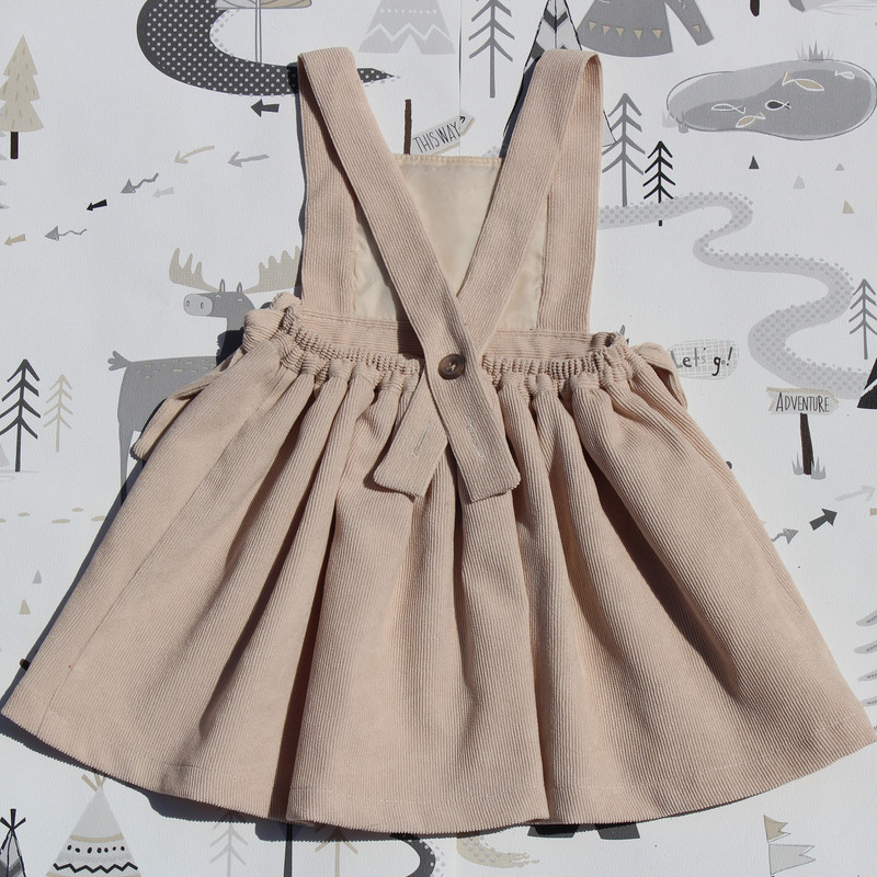 سارافون دخترانه نهال طراحی مینیمال و جذابی دارد. رنگ لباس سدری است. جنس این دامن از مخمل کبریتی ریز است. آسترکشی شده است. پشت کمر دامن کشی است. این دامن با دو پاپیون گرهای زیبا در قسمت کمر تزیین شده است. بندهای روی سرشانههای دامن، قابل تنظیم است. بنابراین کافی است برای انتخاب سایز به قد دامن که از کمر محاسبه میشود و دور کمر کودک دقت شود. با توجه به اینکه پشت کمر دامن کشی است، اندازه دور کمر کودک به صورت بازه داده شده است. این لباس دوخت مزون جامیتو است.