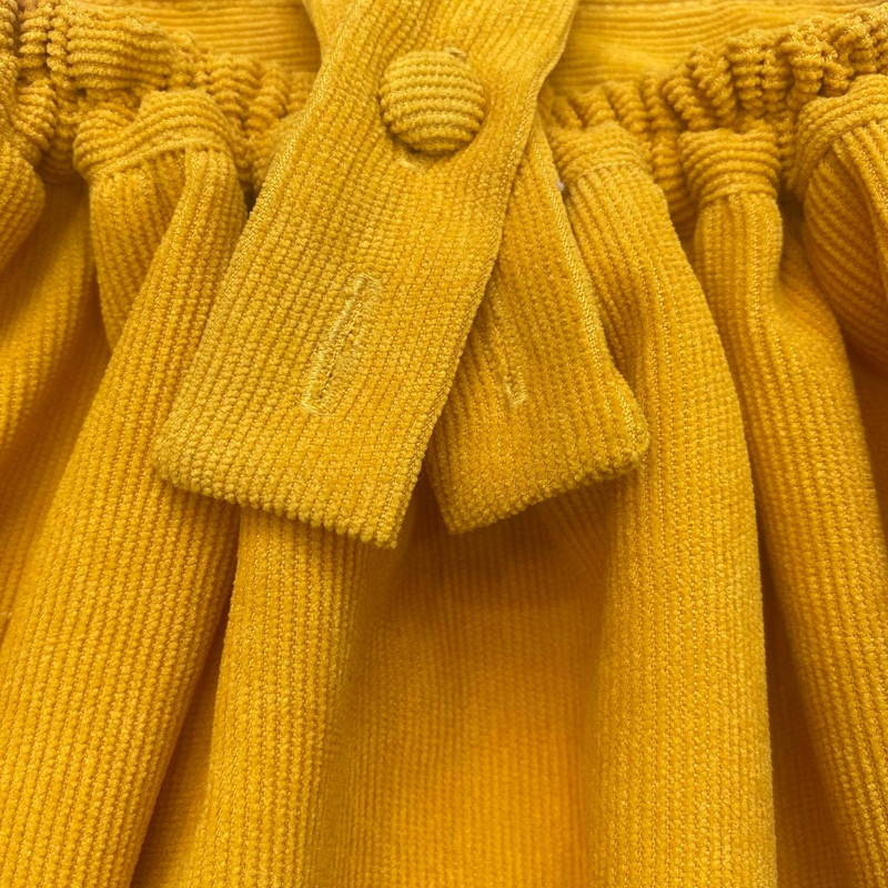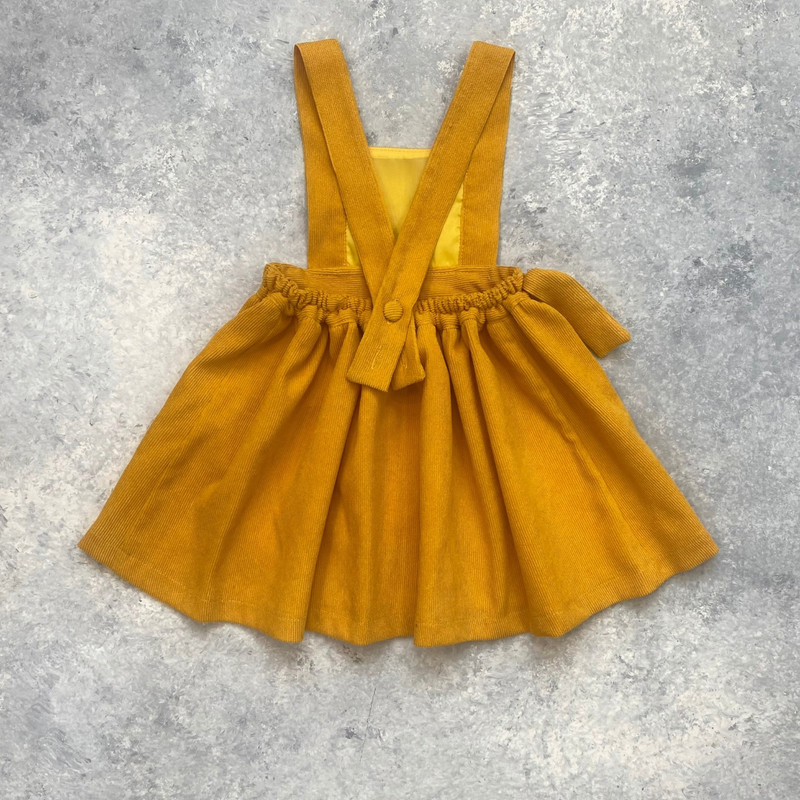 پیراهن دخترانه دل آرام طراحی مینیمال و جذابی دارد. جنس این دامن از مخمل کبریتی ریز است. آسترکشی شده است. پشت کمر دامن کشی است. این دامن با دو پاپیون گرهای زیبا در قسمت کمر تزیین شده است. بندهای روی سرشانههای دامن، قابل تنظیم است. بنابراین کافی است برای انتخاب سایز به قد دامن که از کمر محاسبه میشود و دور کمر کودک دقت شود. با توجه به اینکه پشت کمر دامن کشی است، اندازه دور کمر کودک به صورت بازه داده شده است.