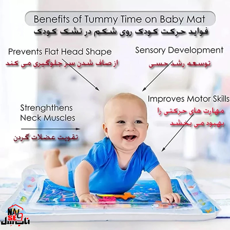 سایر توضیحات : تقویت مهارتهای مختلف: بازی با واتر مت، فواید بیشماری برای کودکان دارد. این محصول به تقویت هماهنگی چشم و دست، تحریک بینایی، تقویت عضلات دست و گردن، تحریک حسی، تقویت عضلات شکم و همچنین آماده کردن کودک برای حفظ تعادل هنگام راه رفتن کمک میکند.