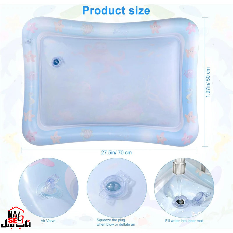 اگر به دنبال راهی جذاب و سرگرمکننده برای تقویت مهارتهای مختلف کودک دلبندتان هستید؟ واتر مت کودک، محصولی فوقالعاده جدید و دوستداشتنی، دنیایی آبی و شگفتانگیز را برای کودکان شما از بدو تولد تا سنین بالاتر به ارمغان میآورد. این تشکچه بادی آبی با طراحی منحصر به فرد و رنگهای شاد، لحظات پر از هیجان و بازی برای کودکان شما خلق میکند. واتر مت کودک، محصولی فوقالعاده جدید و دوستداشتنی که از مواد مرغوب و بدون بو و فاقد مواد مضر ساخته شده و برای سلامتی کودکان کاملاً بیخطر میباشد. این محصول به واسطه طراحی جذاب و عروسکهای شناور، به تقویت مهارتهای مختلف حرکتی و حسی کودکان کمک میکند و لحظات شاد و خاطرهانگیزی را برای آنها رقم میزند. واتر مت کودک یه محصول فوق العاده جذاب و کاربردی برای کسانی که به رشد و تقویت ماهیچه ها و عضلات حسی حرکتی کودک خودشون اهمیت میدن ! ویژگی واتر مت کودک مواد ایمن و ضد حساسیت: واتر مت کودک از مواد مرغوب و بدون بو و فاقد مواد مضر ساخته شده است و برای سلامتی کودکان کاملاً بیخطر میباشد. این محصول همچنین با محیط زیست سازگار بوده و در تولید آن از مواد قابل بازیافت استفاده شده است. پر کردن آسان: باد کردن واتر مت به وسیله تلمبه به سادگی انجام میشود. پس از باد شدن، میتوانید از طریق درب مخزن، آن را با آب گرم یا سرد (به دلخواه) پر کنید و دنیای آبی شگفتانگیز واتر مت را برای بازی کودکتان آماده کنید. طراحی جذاب و کودکانه: کف این تشکچه با طرحهای شاد و کودکانه تزیین شده است که جذابیت بازی با آن را برای کودکان دوچندان میکند. عروسکهای فومی شناور: داخل واتر مت، عروسکهای فومی مسطح وجود دارد که با شناور شدن در آب، کودک را به شناخت بهتر و دنبال کردن آنها تشویق میکنند و حس کنجکاوی و تمرکز او را برمیانگیزند.