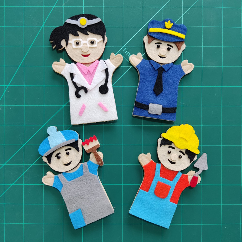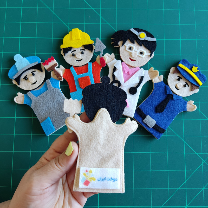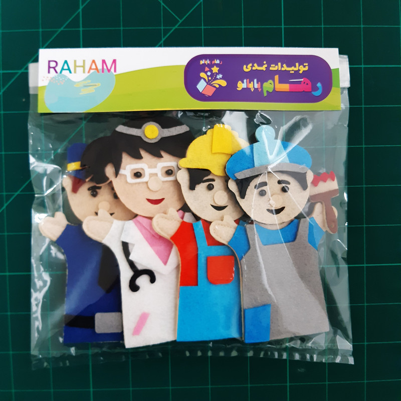 عروسک انگشتی های نمدی تولید مجموعه رهام پاپالو مدل مشاغل با مرغوب ترین نمد ها و مواد اولیه درجه یک تولید می شود.برش عروسک ها توسط دستگاه برش لیزری انجام گرفته و نهایت دقت در دوخت محصولات صورت گرفته است. از این محصول می توانید به عنوان وسیله کمک آموزشی در مدارس و مهد کودک ها و یا در منزل جهت شکوفایی خلاقیت کودکان در شناخت مشاغل و داستان سرایی استفاده نمایید.