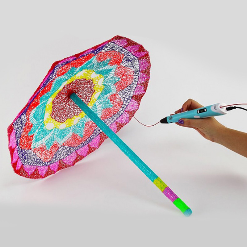 قلم یا خودکار سه بعدی، ابزاری جدید است که رشته های پلاستیکی (فیلامنت) را در رنگ های متنوع ذوب و از نازل خود خارج می کند، سپس سرد می شود و قطعات و طرح های زیبا و کاربردی را ایجاد میکند. قلم سه بعدی نه تنها ابزاری مناسب برای هنرمندان، طراحان، معماران، دانشجویان و دانش آموزان است بلکه قابل استفاده برای تمام افرادی است که به دنبال راهی برای ابراز ذوق و خلاقیت خود می گردند. شما با استفاده از الگوهای ذهنتان می توانید آثاری جذاب و فوق العاده خلق نمایید.قبل از استفاده حتما دفترچه راهنما را مطالعه بفرمایید و فیلامنت های رنگی در بازار موجود هستند که بعد از اتمام به راحتی میتوانید تهیه کنید.