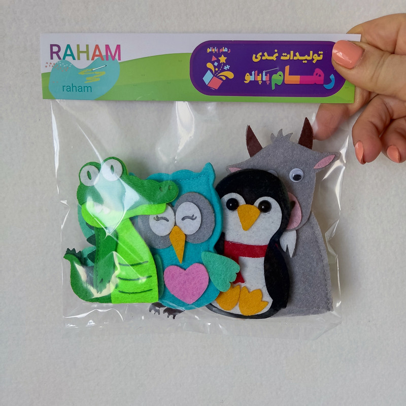 عروسک انگشتی های نمدی حیوانات با مرغوب ترین نمد ها و به صورت دولایه تولید می شوداز این محصول می توانید به عنوان وسیله کمک آموزشی در مدارس و مهد کودک ها و یا در منزل جهت شکوفایی خلاقیت کودکان در داستان سرایی استفاده نمایید.