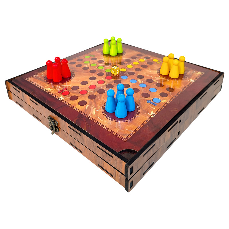 شامل بازی های : شطرنج ، چکرز ، منچ ، مارپله ، دوز ، شوتبال ، کش بال همراه تمام مهره ها و بازی x و o جنس این محصول ام دی اف است و مهره ها منچ و مارپله از جنس پلاستیک است و مهره های دوز و شطرنج و شوتبال از ام دی اف لیزر شده است.