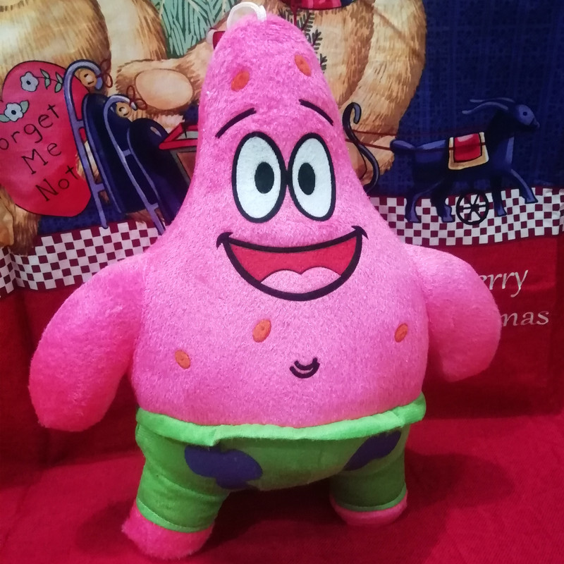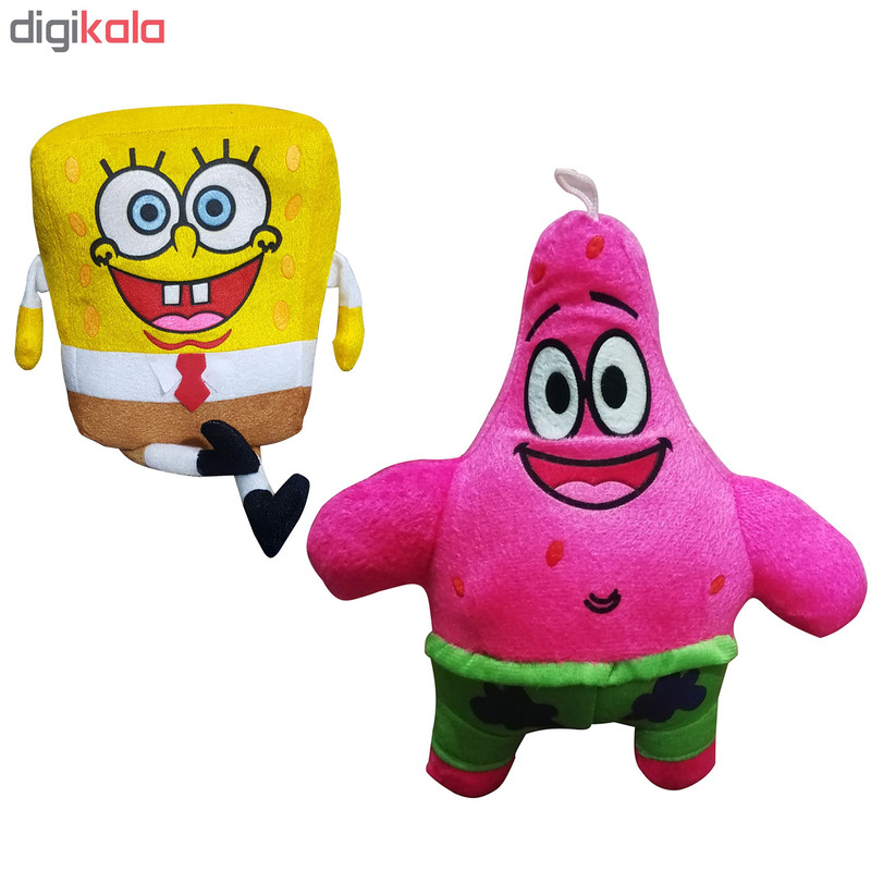عروسک طرح پاتریک ارتفاع 42 سانتی متری به همراه عروسک طرح باب اسفنجی ارتفاع 23 سانتی متری