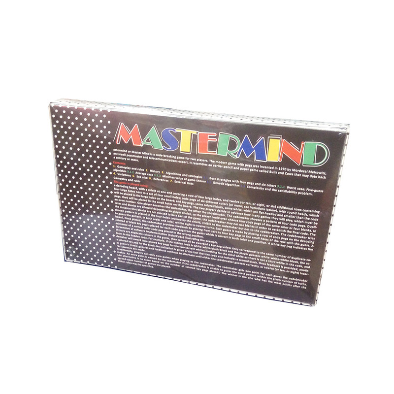 حریف پنج مهره را پشت دیواره مخصوصی پنهان کرده است و شما باید در کمتر از دوازده دوره حدس زدن و چیدمان 5 مهره حریف را به دست آورید.نفر اول 5 مهره را به انتخاب خود در فضای مخصوصی چیده و دیواره را جلوی آنها قرار میدهد تا مخفی بماند ترکیب رنگها می تواند به دلخواهد انتخاب شود نفر دوم باید ترکیب رنگی حریف را حدس زده و 5 مهره را در قسمت مخصوص دوره اول قرار دهد بازیکن اول بر اساس چیدمان نفر دوم به او امتیاز می دهد رنگ سیاه نشان دهنده رنگ و موقعیت در صفحه مهره و رنگ سفید نشان دهنده این است که رنگ مورد نظر در جایگاه است ولی باید جای آن تغییر کند. این یک بازی کاملا استراتژیک و باعث افزایش قدرت تحلیل و واکاوی و حدس و گمان در بازیکن خواهد شد.