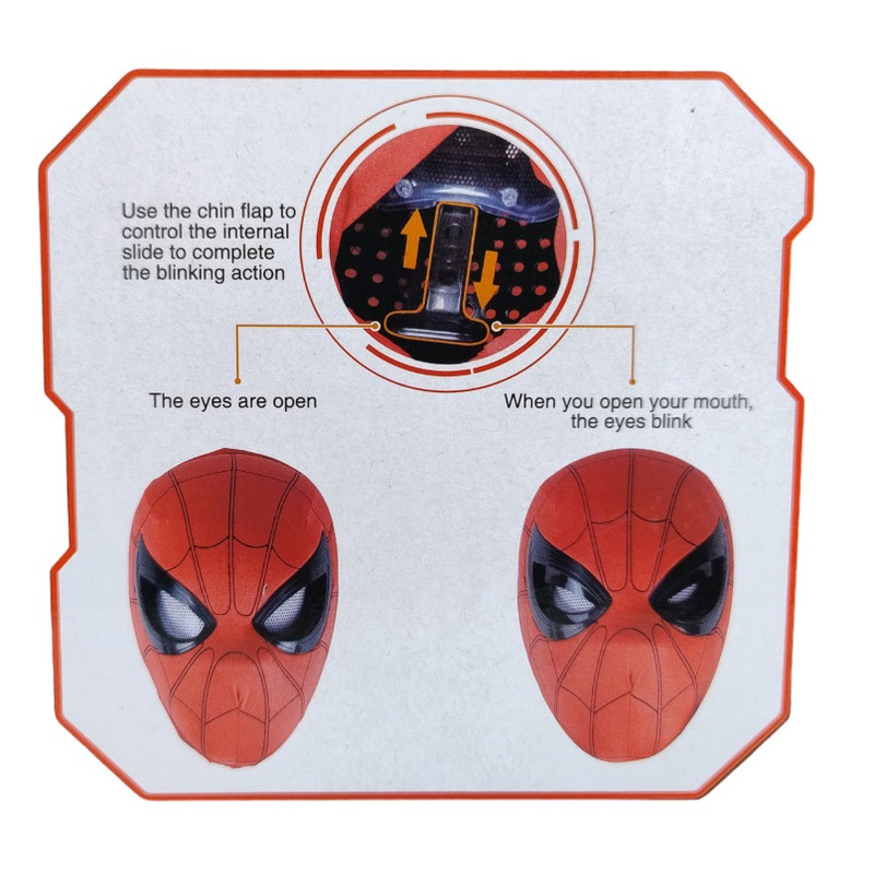 فول ماسک اسپایدرمن . دارای اهرم در زیر فک که بوسیله آن میتوان با باز و بسته کردن دهان چشمها را باز و بسته نمود . دارای کیفیت عالی .
