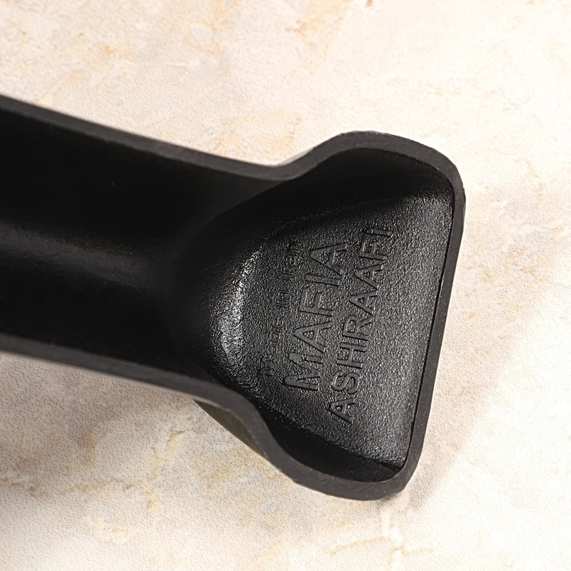 دقت داشته باشید ماسک های تولید شده اشرافی طبق تصویری که گذاشته شده در انتهای دسته در قسمت داخلی دارای حک نوشته MAFIA ASHRAAFI می باشند و این نشان به معنای بهترین کیفیت ماسک تولید شده در ایران میباشد