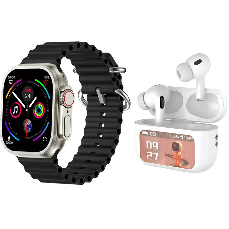 این پک شامل یک ساعت هوشمند مدل اولترا با ابعاد 49 میلیمتر و یک هندزفری بلوتوثی با صفحه نمایش لمسی است که هر دو همراه با هفت بند در رنگها و طرحهای مختلف برای ساعت ارائه میشود.