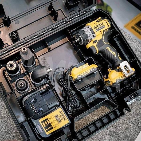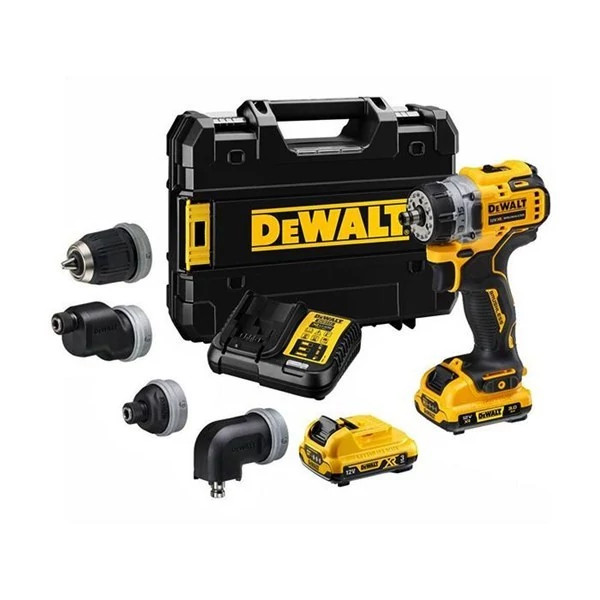 دریل پیچ گوشتی 12 ولت موتور براشلس دیوالت مدل DCD703L2T، برای انواع فعالیت های سوراخ کاری و باز و بسته کردن پیچ و مهره به کار می رود قابلیت ویژه این دریل پیچ گوشتی همراه داشتن 4 عدد سری متفاوت معمولی، 90 درجه، گریز از مرکز و پیچ گوشتی برای دسترسی به جاهایی که امکان کار کردن سخت و محدود است استفاده می شود.