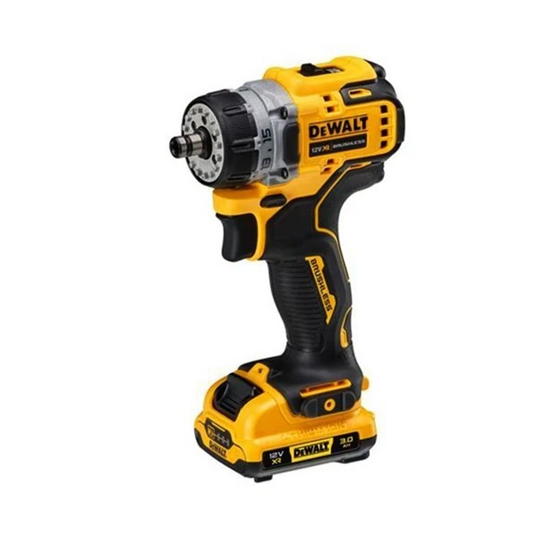دریل پیچ گوشتی 12 ولت موتور براشلس دیوالت مدل DCD703L2T، برای انواع فعالیت های سوراخ کاری و باز و بسته کردن پیچ و مهره به کار می رود قابلیت ویژه این دریل پیچ گوشتی همراه داشتن 4 عدد سری متفاوت معمولی، 90 درجه، گریز از مرکز و پیچ گوشتی برای دسترسی به جاهایی که امکان کار کردن سخت و محدود است استفاده می شود.