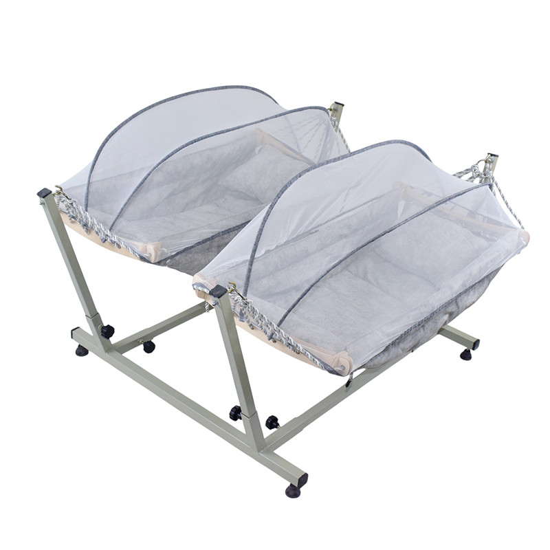 گهواره دو قلو نوزاد رایان دارای یک پایه فلزی به طول 125 سانتی متر عرض 87 سانتی متر و ارتفاع 60 سانتی متر است.