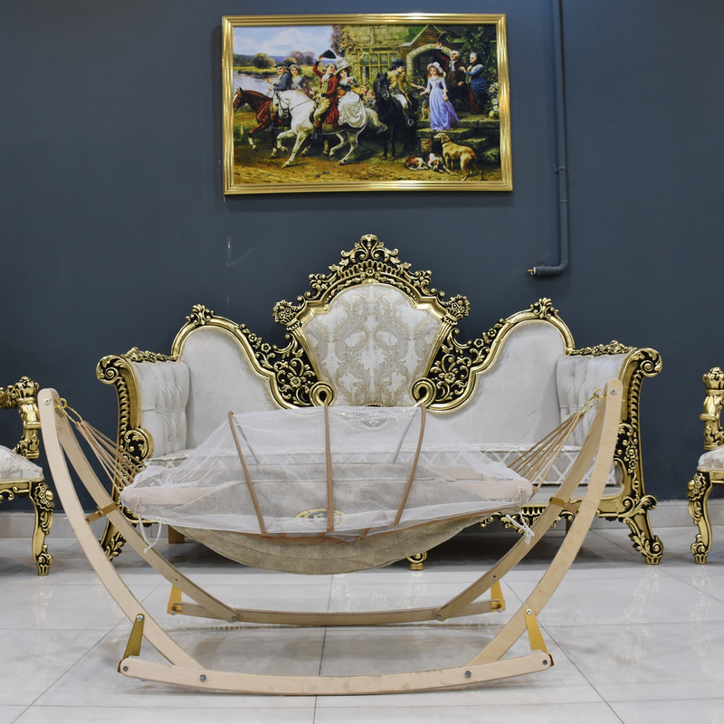 با سلام خدمت هم میهنان گرامی. وقتی یک خریدار کالایی رو غیر حضوری خریداری می کند لازم است که اطلاعات کاملی در مورد محصول داشته باشد و با اطمینان خاطر خرید کند . پس برای خرید بهتر پیشنهاد میکنم معرفی نامه محصول رو بادقت مطالعه بفرمایید باتشکر. گهواره ی سنتی یا ننو چوبی از چهار قسمت اصلی تشکیل شده است: 1. بدنه گهواره : از چوب هفت لایه ی روسی با کیفیت عالی وضد رطوبت که بسیار مستحکم هستش و راحت قابل باز و بست می باشد که بخاطر کیفیت بالای بدنه، گهواره از طول عمر بالایی برخوردار میباشد. 2. (تخت یا تشک یا سبد) گهواره :که از جنس پارچه ی رو مبلی باضخامت عالی بسیار زیبا وکیفیت درجه یک می باشد. از مهم ترین مزیت های سبد گهواره، تاشو بودن و قابل شستشو بدون سبد هست که به راحتی داخل کاور جای گذاری می شود. 3. تور یا پشه بند گهواره : گهواره دارای پشه بند سیار می باشد کیفیت تور هم درجه یک و عالی هستش و از تور های خشک و بی کیفیت استفاده نشده و هرموقع خواسیتن میتوانید پشه بند را به راحتی روی گهواره نصب کنید. 4. اتصالات گهواره : تسمه ترمز از مواد تزریقی (پلی اتیلن020) نو و درجه یک و یراق آلات با آبکاری فورتیک رنگ طلایی بسیار زیبا و مستحکم. وزن کالا 4.7 کیلو گرم و با بسته بندی 5.5کیلوگرم می باشد که همه ی اجزای گهواره داخل کاور جای گذاری می شود و به راحتی قابل حمل می باشد. باز و بست بسیار ساده که بدون باز و بست هیچ گونه پیچ و مهره ای به راحتی نصب میشود طول گهواره 145 سانت عرض 55 سانت ارتفاع 70 سانت و اندازه ی سبد یا تشک گهواره که بچه داخل آن میخوابد 85*40 میباشد. این گهواره دو منظوره هستش یعنی گهواره هم متحرکه و تکون میخوره که زاویه تکون خوردن خیلی خوبی هم دارد و هم اینکه هر موقع خواستین میتوانید به راحتی آن را مثل تخت ثابت کنید و موقع خواب کودک حرکت نکند دارای قابلیت تنظیم ارتفاع در دو حالت که امکان تغییر شیب سبد گهواره را فراهم میکند. وبرای مواقع کولیک و دل درد بچه عالی می باشد دارای کمربند ایمنی کودک. گهواره سنتی شادی مناسب برای نوزادان از بدو تولد تا سن 2 سالگی می باشد و قابل استفاده در منزل،سفر و طبیعت. امیدوارم در کنار این گهواره لحظات خوب و شیرینی رو با نوزاد دلبندتون تجربه کنید. باتشکر از همراهی شما موفق باشید.