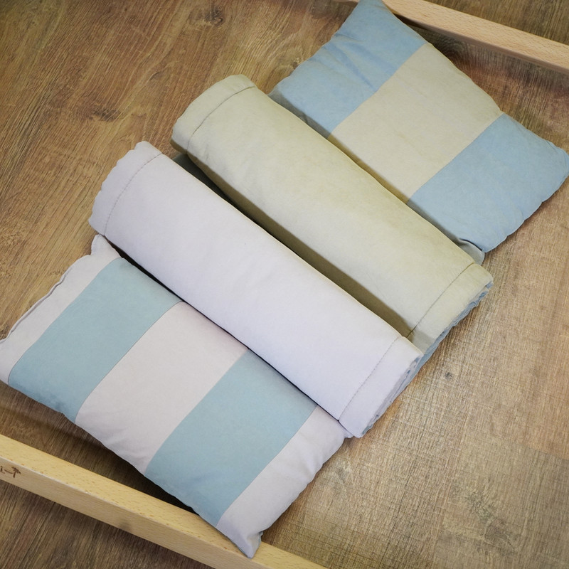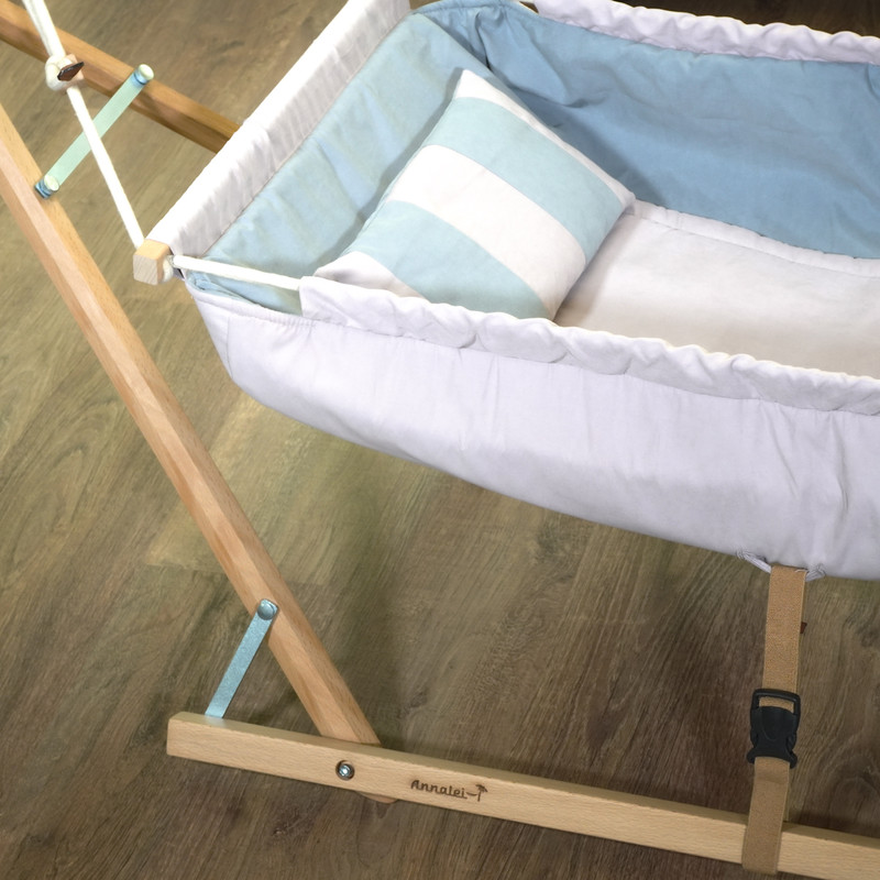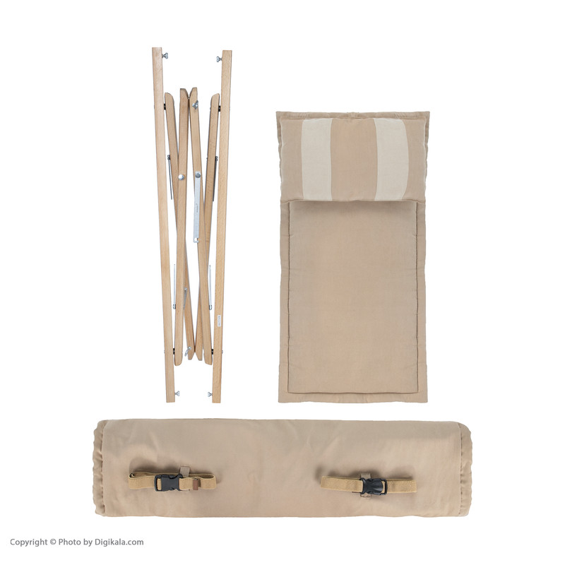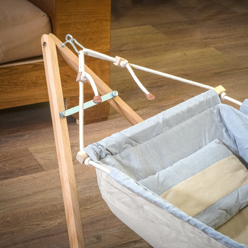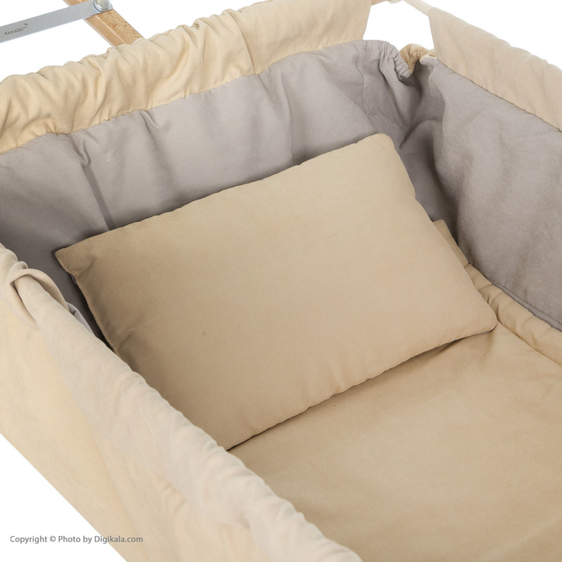 بستر خواب نوزاد با استفاده از پارچه نخي با گرماژ بالا و بصورت دو لايه دوخته شده است و از استحكام بالايي برخوردار است. در میان پارچه لایه ای از پشم شیشه قرار گرفته است تا بستری نرم برای نوزاد ایجاد گردد. به همراه بستر، یک تشک و بالش قرار داده شده است.