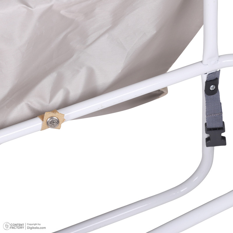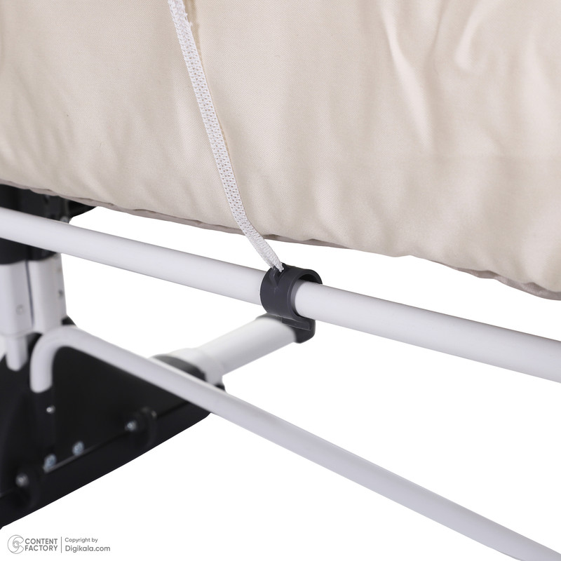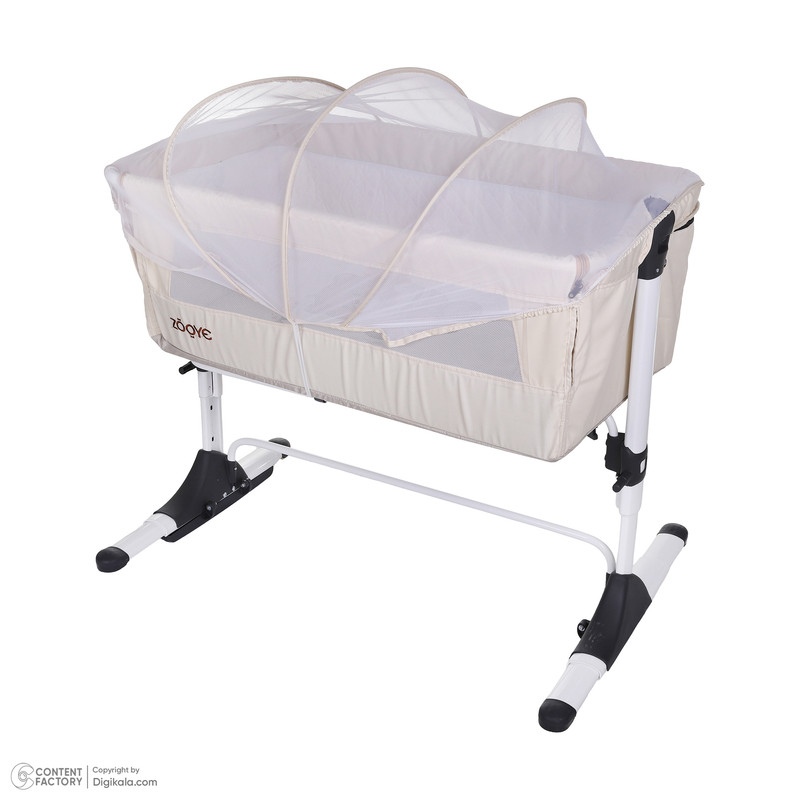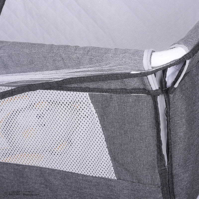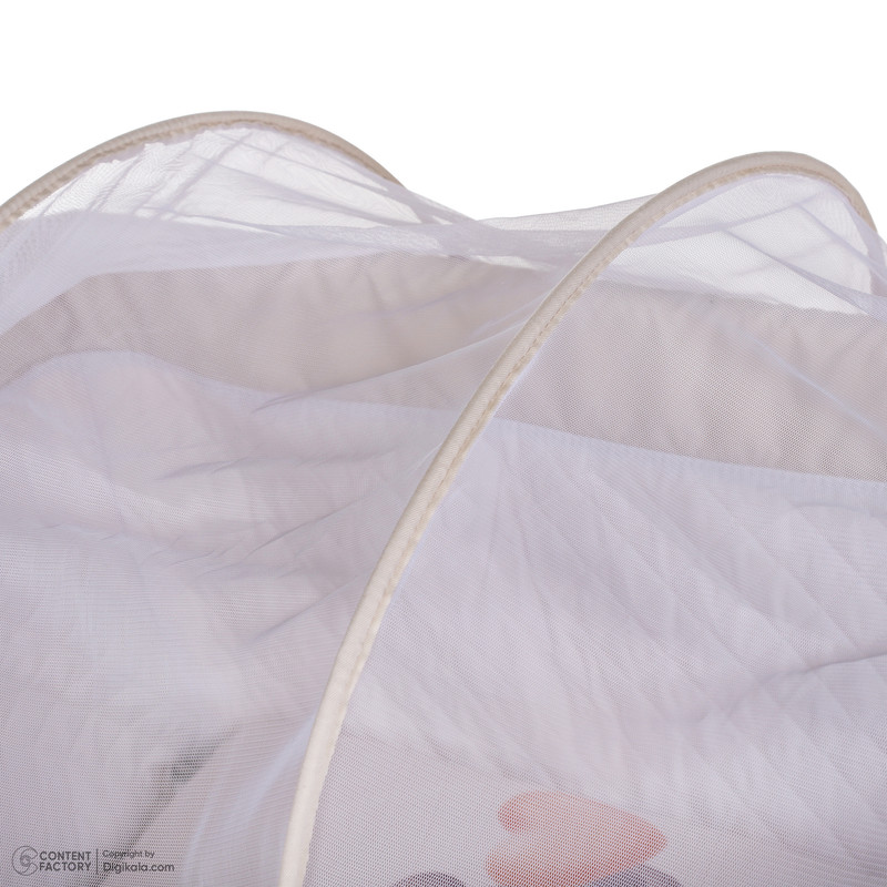 سایر توضیحات : - دارای کمربند اتصال به تخت مادر جهت جلوگیری از افتادن کودک - پایه‌ها با قابلیت تبدیل شدن به گهواره - دارای دستگیره‌های تنظیم ارتفاع - پارچه داخل راشل و تترون 3 لایه ضد تعریق و ضد حساسیت - دارای پشه بند