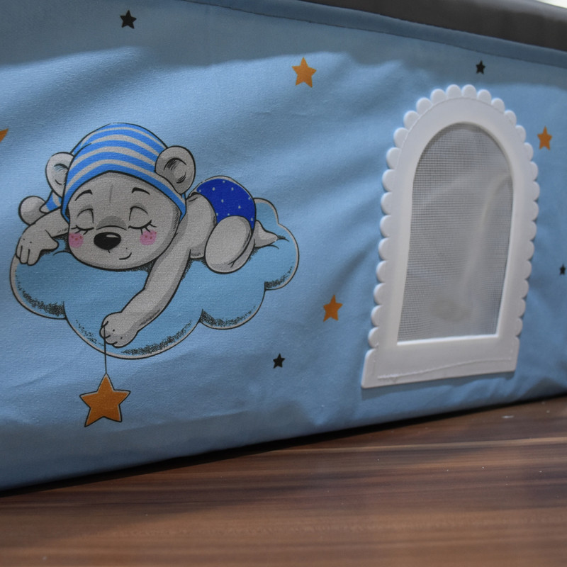 2. (تخت یا تشک یا سبد) گهواره :که از جنس پارچه ی مخمل با کیفیت عالی و چاپ عروسکی میباشد. از مهم ترین مزیت های سبد گهواره، تاشو بودن و قابل شستشو بدون سبد هستش که به راحتی داخل کاور جای گذاری میشه