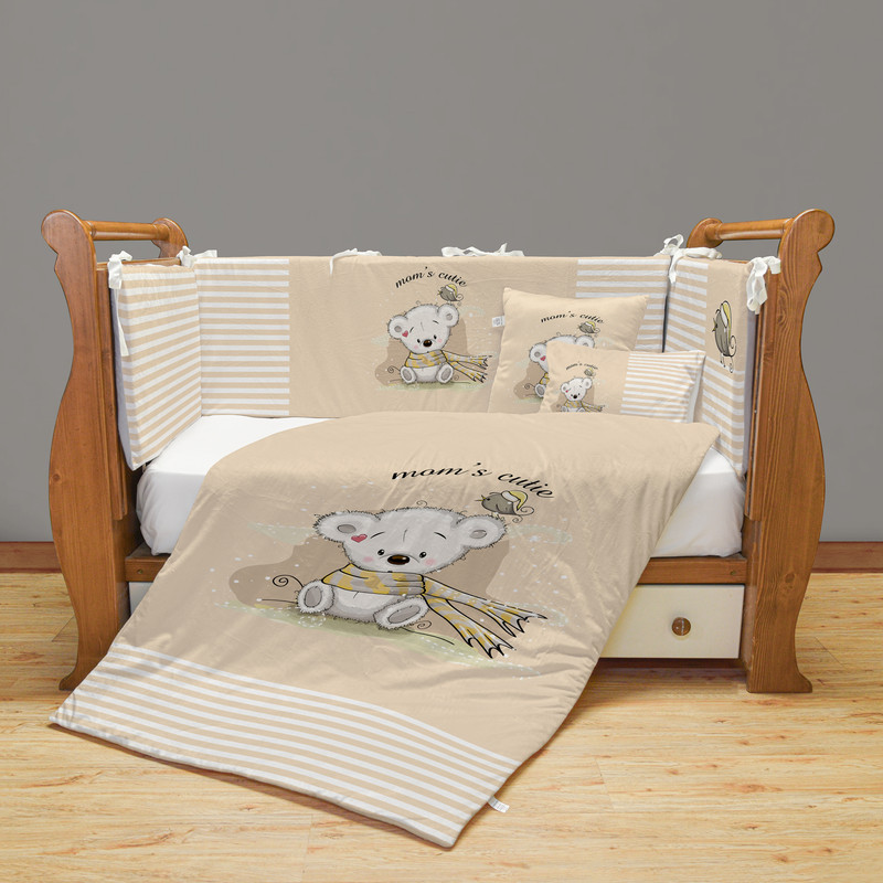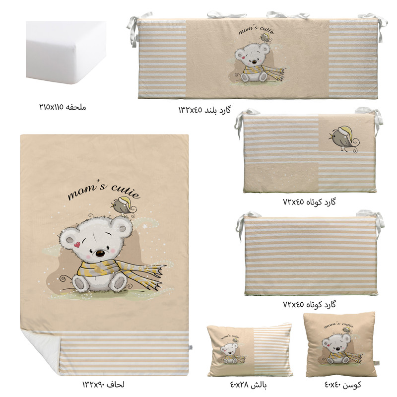 سرویس خواب 7 تکه روتختی مامزکیوتی یکی دیگر از مجموعه تولیدات برند مامزکیوتی است که شامل لحاف ، ملحفه تشک، بالش ، کوسن و 3عدد گارد محافظ تخت میباشد. جنس رویه محصول از پارچه مخمل توشکا ضد حساسیت و جنس پشت کار از نخ پنبه 100% میباشد ، چاپ استفاده شده برای محصولات ترانسفر (چاپ دوستدار طبیعت) بوده که قابلیت شستشو با ماشین و دست را دارد . الیاف داخل گاردها از نوع فشرده قالبی به ضخامت 4 سانتیمتر میباشد که باعث خوش فرم قرار گرفتن در دور تخت میشود در ضمن تمامی گاردها بصورت کاوری زیپ دار بوده که این امر موجب سهولت در شستشو میباشد