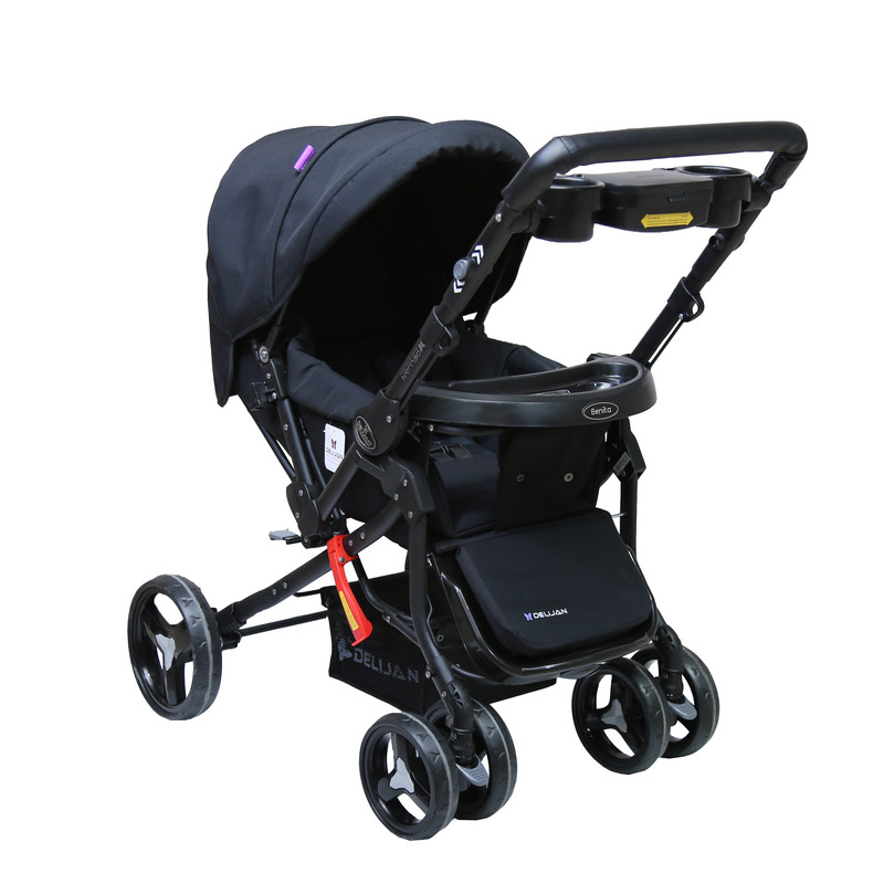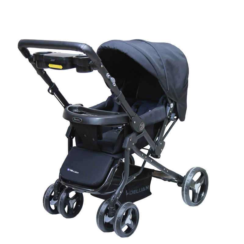 - دارای جای لیوان - دارای سبد خرید - دارای جلو پایی - قابلیت رو به مادر شدن - دارای ترمز چرخهای جلویی