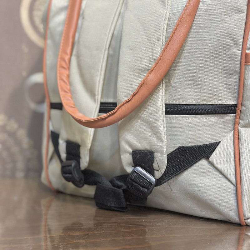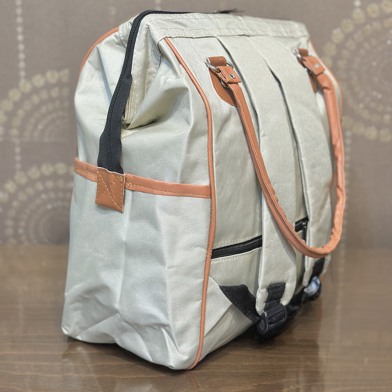 محصولی مه مشاهده می فرمایید ساک لوازم مامی بگ مدل کوله ای می باشد.این ساک لوازم کودک ساخته شده از جنس برزنت بوده و دارای دوام و مقاومت بالایی است.این ساک لوازم کوله دارای 2 جیب در قسمت های جانبی می باشد که مناسب برای قرار دادن فلاسک کودک بوده و همچنین دارای یک جیب زیپ دار در قسمت جلویی خود می باشد.هم چنین در قسمت فضای داخل نیز دارای قسمت بندی برای قرار دادن شیشه شیر کودک و سایر لوازم می باشد.این محصول در 3 رنگ کرم , مشکی و نوک مدادی عرضه می شود.