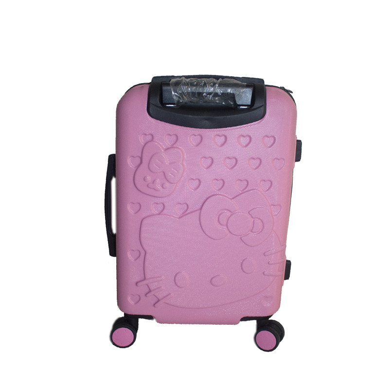 طرح کیتی، طرح این چمدان به صورت برجسته در دو طرف قرار گرفته دارای چهار چرخ و دو دسته که یکی از آنها دسته تراولی است که به حمل و نقل چمدان کمک میکند، این روز ها میتوانید برای سفر به مناطق مختلف برای فرزند دلبندتان یک چمدان هم تهیه کنید تا در طی سفر او هم تمام وسایل مورد نیازش را همراه خود بیاورد.