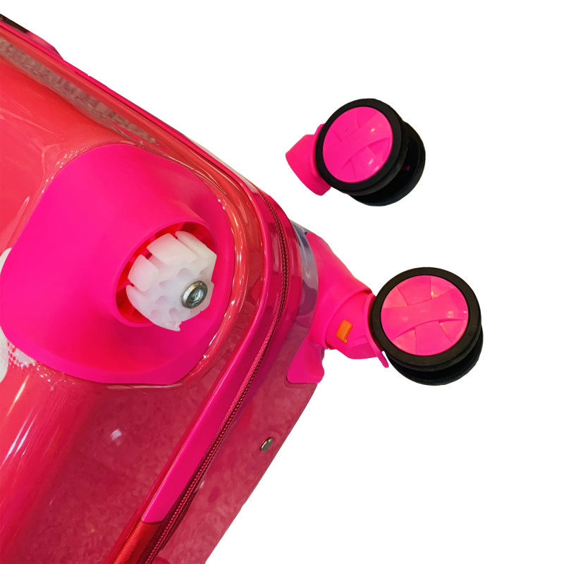 دسته تلسکوپی با قابلیت تنظیم ارتفاع، چرخ های جداشونده، چرخ های دوبل 360 درجه بسیار روان، قفل بدنه جهت زیپ های درب چمدان، سلفون ضخیم بر روی بدنه جهت محافظت بیشتر و آستر ساتن بسیار با کیفیت