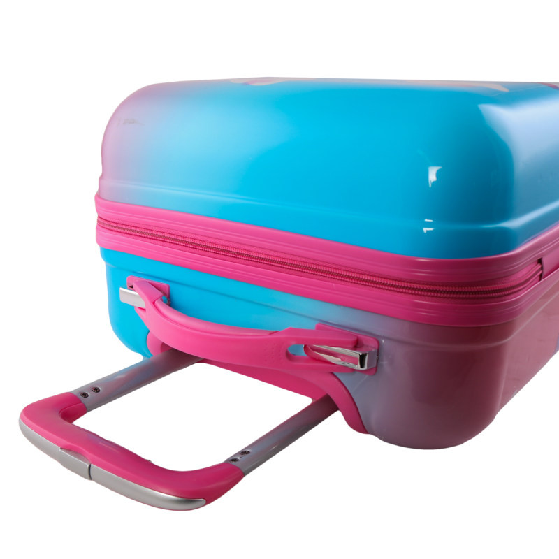 این محصول از جنس پلی کربنات انعطاف پذیر ساخته شده است که علاوه بر استحکام بالای آن وزن بسیار سبکی دارد و این وزن سبک و همچنین چرخ های دوبل و روان 360 درجه که قابلیت جدا شدن نیز دارند حرکت چمدان بر روی تمام سطوح را بسیار راحت کرده است. 2زیپ در داخل چمدان قرار دارد که یکی از زیپ ها توری است و برای نگهداری لوازم شخصی مناسب است. جهت جلوگیری از جابجایی وسایل داخل چمدان هم محفظه ی اصلی به یک کمربند ثابت کننده ی بار مجهز شده تا خیالتان بابت مرتب بودن وسایل سفر بر اثر تکان خوردن راحت باشد. مهمترین ویژگی چمدان که باعث شده حمل آن برای کودک هم راحت تر شده باشد دسته تلسکوپی آن است. این دسته از جنس آلومینیم ساخته شده و در دو ارتفاع مختلف قابل تنظیم خواهد بود. پس با توجه به قد کودک دسته چمدان را تنظیم کرده و در اختیار او قرار دهید.این محصول به صورت دو رو چاپ کارتونی میباشد که وجه تمایز با محصولات بی کیفیت میباشد و همچنین دارای قفل بدنه جهت زیپ های چمدان میباشد.
