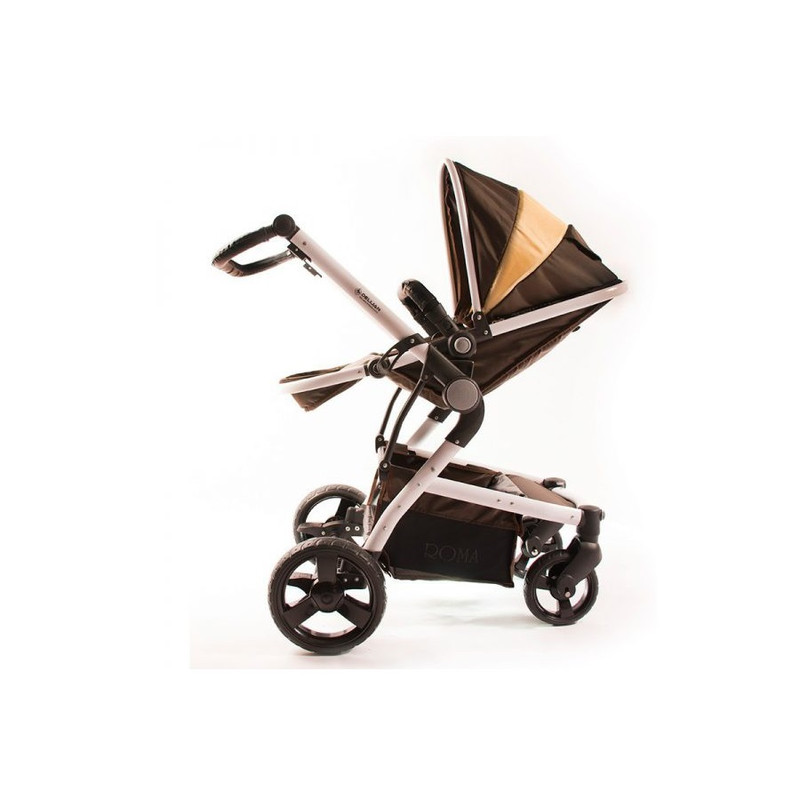 جنس بدنه کالسکه روما از فلز و جنس روکش آن برزنتی می باشد که قابلیت شستشوی فروان را دارد و مناسب گروه سنی از بدو تولد تا 4 سال می باشد.وزن کالسکه 10 کیلوگرم و وزن قابل تحمل آن 15 کیلوگرم می باشد.چرخهای عقبی مجهز به ترمز و چرخهای جلویی با قابلیت چرخش 360 درجه و دارای پشتی قابل تنظیم در 3 حالت مختلف و دارای دسته مبله روکشدار می باشد.قسمت سیت (نشیمنگاه )قابلیت جداسازی و نصب رو به مادر و رو به جلو را دارد.مجهز به کمربند ایمنی 5 نقطهای، جهت حفظ ایمنی بیشتر کودک و مجهز به سایبان جهت جلوگیری از تابش مستقیم خورشید می باشد کالسکه دلیجان مدل (Roma) دارای سایهبان است و از تابش نور به فرزند دلبندتان جلوگیری میکند.پشتی صندلی این کالسکهی 109 سانتیمتری قابلیت تنظیم در سه حالت مختلف را دارد.چهارچرخ این کالسکه در دو ابعاد مختلف طراحیشده و قابلیت جداسازی و نصب آسان دارند.کمربند ایمنی آن بهصورت پنج نقطهای بوده .علاوه بر این دارای یک گارد باقابلیت جداسازی است.این امر در افزایش ایمنی کودکان بسیار مؤثر است. چرخهای عقب با قطر 25 سانتیمتر ترمز دار هستند و بزرگترند. از این چرخها برای ایستایی بیشتر کالسکه استفاده میشود. چرخهای جلوی این محصول قابلیت چرخش 360 درجه داشته و میتوان آنها را ثابت هم کرد. تحمل وزن این کالسکه تا ۱۵ کیلوگرم بوده و جمعکردن آن خیلی راحت است و پس از تا شدن فضای کمی به ابعاد 110 × 52 × 61 سانتیمتر را اشغال میکند که میتوان آن را بهراحتی در ماشین قرار داد ، سبدی بزرگ باکیفیت عالی برای قرار دادن وسایل کودک و مادر در پایین کالسکه قرار دارد.