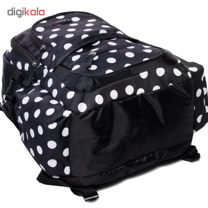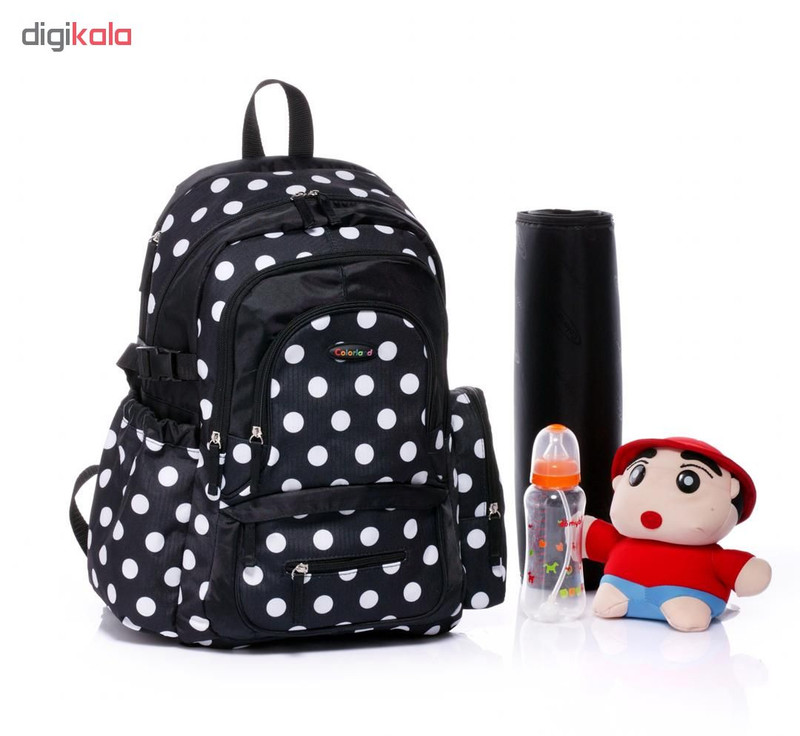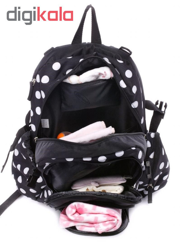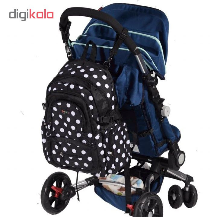 دارای یک عدد زیرانداز تعویض دارای یک محفظهی عایق نگهداری شیشهشیر با بست زیپی در کنار کوله بههمراه پدهای پشتی با قابلیت جریان داشتن هوا دارای تسمههای اتصال به دستهی کالسکه دارای بندهای افزایش حجم جانبی دارای یک جیب با بست کشی در کنار