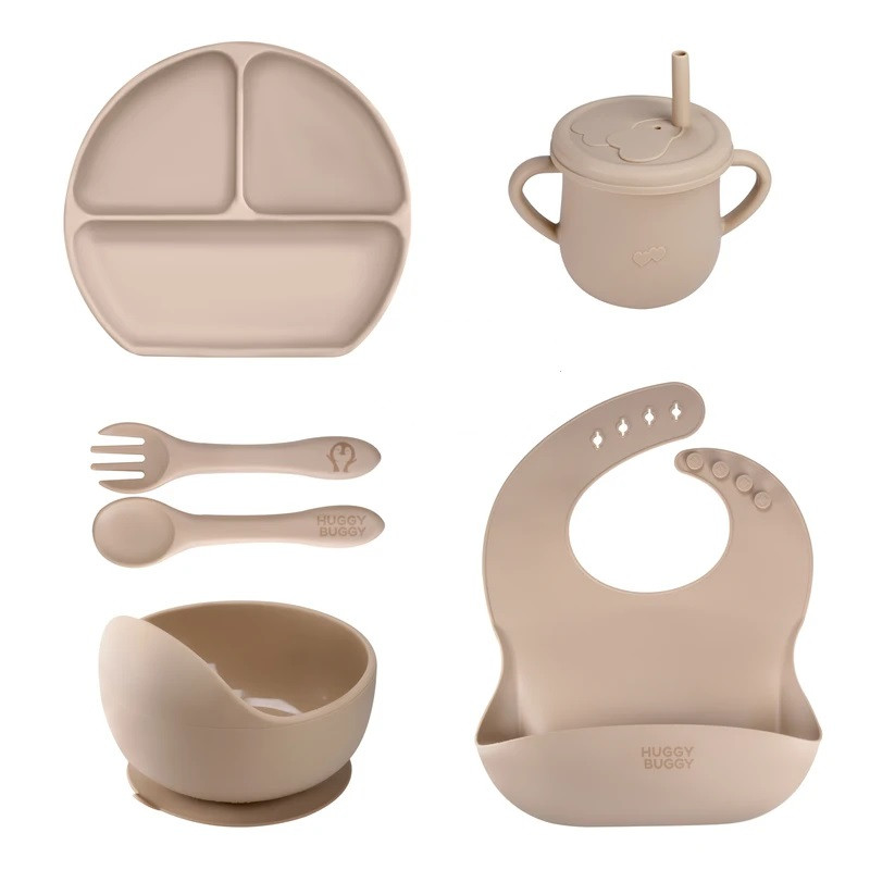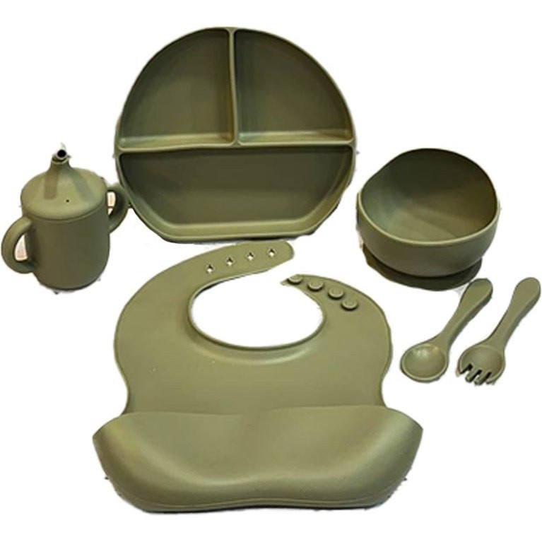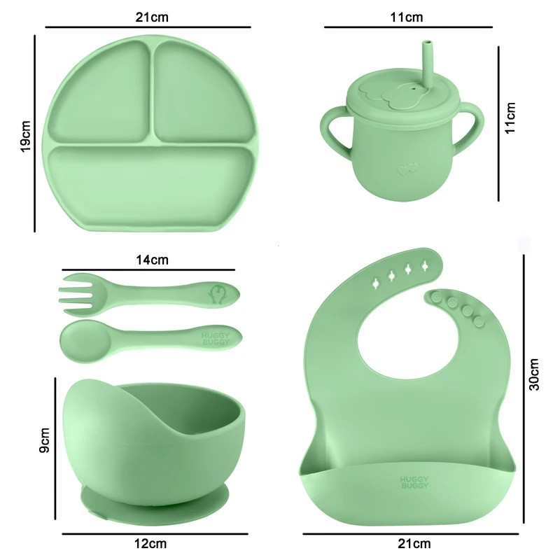 ست ظرف غذای سیلیکونی شامل بشقاب چند قسمتی با قابلیت چسبیدن بر روی میز ، کاسه لبه دار با قابلیت چسبیدن بر روی میز ، پیشبند قابل تنظیم سایز گردن ، لیوان دسته دار ، درپوش نی دار لیوان ، درپوش اسنک خوری ، قاشق و چنگال میباشد . جنس تمام تکه ها از سیلیکون مخصوص مواد غذایی می باشد و فاقد BPA ، لاتکس، Phthalate ، نیتروزامین است. کاسه و بشقاب این محصول را میتونید در ماکروویو و فر قرار دهید . همچنین کلیه تکه ها را میتوانید در فریزر و ماشین ظرفشویی قرار دهید .