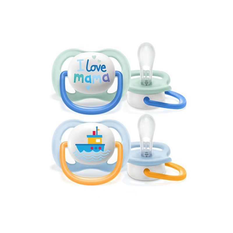 پستانک های الترا ایر فیلیپس اونت بسیار سبک و با داشتن دو سوراخ اضافه امکان عبور هوا در ناحیه اطراف دهان کودک را به راحتی فراهم می کند . این پستانک با سری ارتودنسی بوده ، و فاقد BPA و مواد مضر شیمیایی می باشد.
