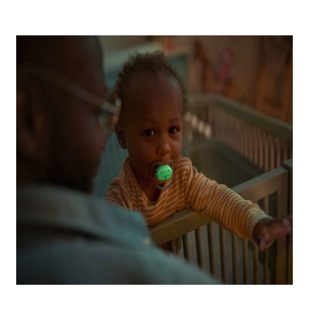 این پستانک شب تاب میباشد آن را در تاریکی بدون نیاز به روشن کردن چراغ ها به سرعت و به راحتی پیدا کنید