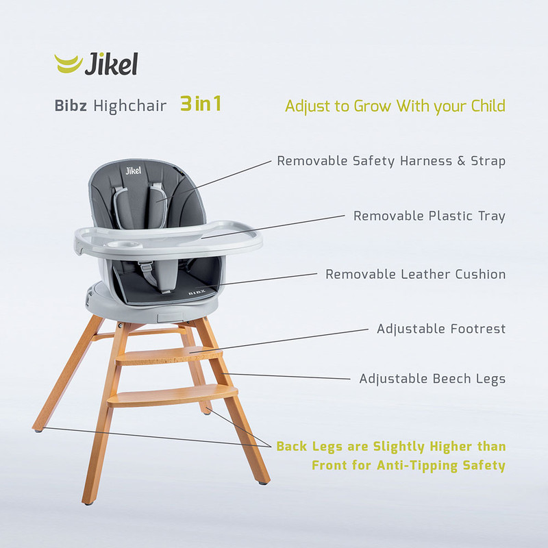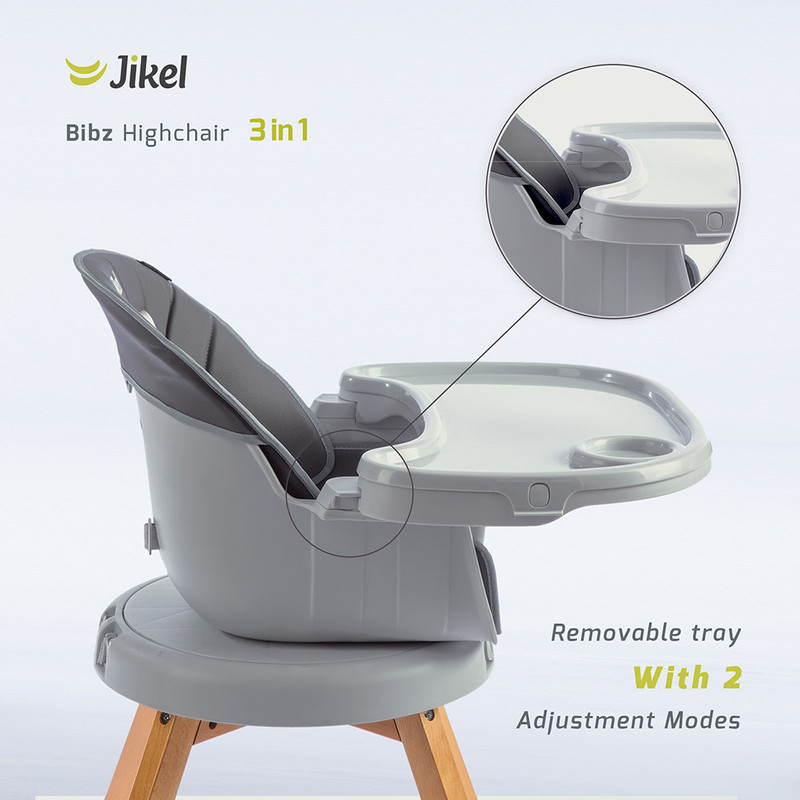 صندلی کودک Bibz، جدیدترین محصول اضافه شده به مجموعه Jikel، راحتی زیادی را ارائه می دهد. با پایه های طراحی شده با چوب، مبلمان زیبایی را به والدین ارائه می دهد تا به خانه خود اضافه کنند. این محصول 3 در 1 است و مزایای بسیار بیشتری برای والدین دارد. می توان از آن به عنوان صندلی کودک استفاده کرد که در دو سطح ارتفاع مختلف قابل استفاده است و دارای یک صندلی قابل چرخش 360 درجه است که به این معنی است که والدین مجبور نیستند صندلی کودک را بلند کرده و در مواقع نیاز بچرخانند، این کار با یک کلیک ساده انجام می شود. و چرخاندن صندلی این صندلی نیز به طور کامل از پایه چوبی خود جدا می شود و می توان آن را روی صندلی ناهارخوری نصب کرد. این بدان معناست که بچههای شما میتوانند بدون نیاز به خرید محصول دیگری، سر میز ناهارخوری بپیوندند. پایه های چوبی را می توان به صورت جداگانه به عنوان صندلی مستقل نیز استفاده کرد که بسته به نیاز شما می توان آن را در دو ارتفاع مختلف قرار داد. Bibz مجهز به مهار 5 نقطه ای و روکش صندلی است که به راحتی جدا می شود و تمیز می شود. سینی همچنین دارای یک پوشش قابل جابجایی برای شستشو است، زیرا همانطور که همه ما می دانیم تغذیه می تواند یک تجربه کثیف باشد.