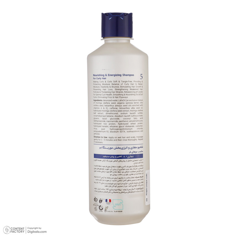 شامپو مغذی و انرژیبخش مورینگا اِمو مدل 5 با حجم 400 میلی لیتر، یک محصول ارگانیک و بی نظیر برای موهای فر است که در ایران تولید می شود و دارای مجوز از سازمان غذا و دارو است. این شامپو با ترکیبی انحصاری به نام LáfaOil، شامل روغن های گیاهی مورینگا، آرگان، هسته انگور و دانه آفتابگردان و ویتامین های A و E، به همراه کافئین و روغن میدوفوم، به شما کمک می کند تا نرمی و لطافت تارهای مو را افزایش دهید و از ایجاد گره جلوگیری کنید. این محصول با حفظ حالت طبیعی و بهبود ظاهر فر مو، تقویت کننده فولیکول های مو بوده و از ریزش آنها جلوگیری می کند. همچنین، با تامین مواد مغذی و رطوبت مورد نیاز مو، موهای شما را سالم و درخشان نگه می دارد. شامپو مورینگا اِمو مدل 5 با ویژگیهای ضد آلودگی های محیطی و جلوگیری از آسیب های ناشی از نور خورشید، انتخابی عالی برای بانوان و آقایانی است که به دنبال حفظ زیبایی و سلامت موهای فر خود هستند. برای استفاده از این شامپو، مقدار مناسبی از محصول را روی پوست سر خود بمالید و به آرامی به مدت 3 تا 5 دقیقه ماساژ دهید تا ترکیبات موثر آن جذب شوند. سپس موهای خود را به طور کامل با آب بشویید و در صورت نیاز، این فرآیند را تکرار کنید. با استفاده منظم از این شامپو، موهایی سالم، درخشان و بدون آسیب خواهید داشت و از زیبایی طبیعی خود لذت خواهید برد. شامپو مغذی و انرژیبخش مورینگا اِمو مدل 5، با فرمولاسیون منحصر به فرد خود، انتخابی بینظیر برای حفظ سلامت و زیبایی موهای فر شماست.