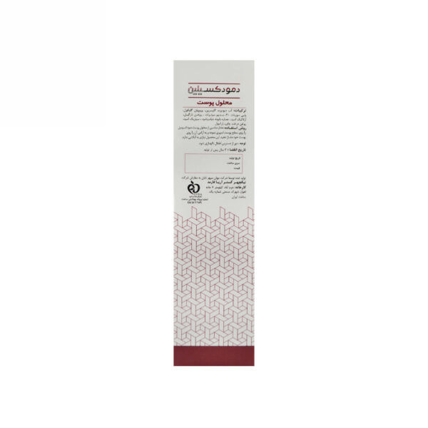 محلول پوست دمودکسیلین دارای ترکیبات گیاهی به نرمی و لطافت پوست کمک می کند. لوسیون دمودکسیلین در دسته بندی مراقبت پوست، با اثر ضد قارچ، ضد باکتری، به بهبود علائم روزاسه، علائم جوش و پوستههای سر و صورت کمک میکند. این محلول پوستی نقش مهمی در تقویت و ترمیم پوست دارد. این محصول التیام بخش، ضد قرمزی و التهاب بوده و برای پوستهای حساس و آسیب دیده نیز مناسب می باشد.