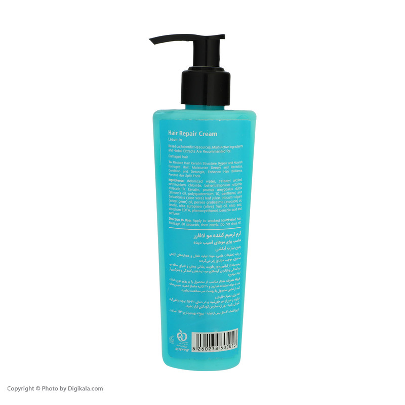این محصول بطور اختصاصی آسیبهای وارده به لایههای شفت مو را ترمیم نموده و توامان حجم مو را افزایش میدهد.کرم ترمیم کننده مو، خلل و فرجهای ایجاد شده در ساختار مو را که میتوانند زمینه ساز موخوره و شکنندگی مو شوند را پوشش میدهد و ساختار یکنواختی برای کوتیکول،لایه خارجی مو،فراهم میآورد.استفاده از این محصول پس از استحمام با وجود مواد موثر و عصارههای گیاهی تقویت کننده دوام ترمیم مو را نسبت به محصولات نیازمند به آبکشی افزایش میدهد که خود زمینه ساز درخشانی و حالت دهی آسانتر به مو میباشد.این محصول علاوه بر عملکردهای فوق با عصارههای گیاهی از جمله روغن بادام،روغن جوانه گندم،روغن آووکادو،روغن زیتون،آلوئهورا و کراتین موجب رطوبت رسانی عمقی به ساقه مو شده و زمینه احیای شفت مو را فراهم میآورد.