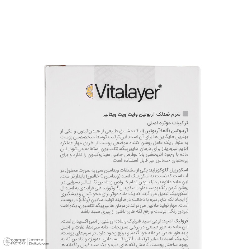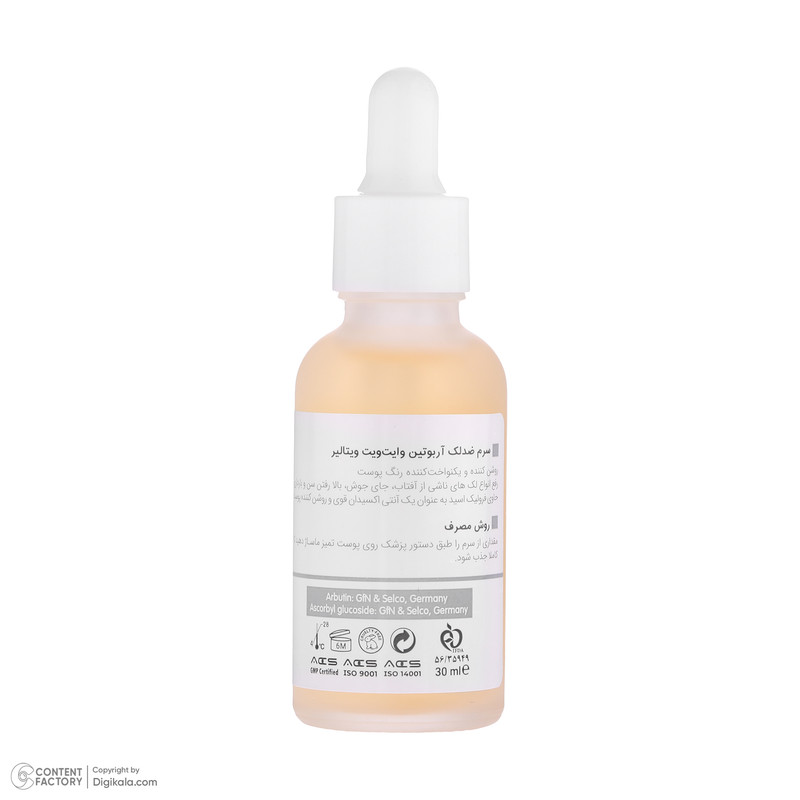 سرم ضد لک ویتالیر مدل آربوتین با حجم 30 میلیلیتر، یک محصول فوقالعاده برای روشنسازی و بهبود کیفیت پوست است که برای انواع پوست مناسب میباشد. این سرم با فرمولاسیون خاص خود، حاوی ویتامینهای تقویتی و مواد مغذی است که به ترمیم و تغذیه پوست کمک میکند. با ویژگیهای منحصر به فردی همچون ضد جوش، ضد پیری و روشنکننده، این سرم به مهار آنزیم تیروزیناز پرداخته و به کاهش لکها و تیرگیهای ناشی از افزایش سن کمک میکند. محفظه شیشهای با طراحی قطره چکانی، استفاده آسان و دقیق از محصول را ممکن میسازد. این سرم همچنین به عنوان یک آنتیاکسیدان عمل کرده و به جلوگیری از چروکهای زودرس کمک میکند. سرم ضد لک ویتالیر تحت شماره مجوز 56/35949 از سازمان غذا و دارو تولید شده و اطمینان خاطر از کیفیت و ایمنی آن را برای مصرفکنندگان فراهم میآورد. به علاوه، این محصول برای خانمهای باردار نیز قابل استفاده است، که نشاندهنده ایمنی و سازگاری بالای آن با پوست است. با استفاده منظم از این سرم، میتوانید به پوستی روشنتر، جوانتر و بدون لک دست یابید.