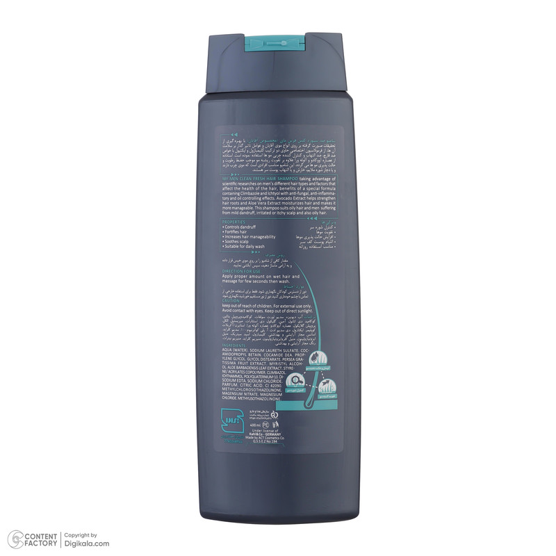 شامپو ضد شوره مای مدل Clean Fresh با حجم 400 میلی لیتر، یک انتخاب عالی برای آقایانی است که به دنبال راه حلی موثر برای مقابله با شوره سر هستند. این شامپو که در ایران تولید می شود و دارای مجوز از سازمان غذا و دارو است. با فرمولاسیون خاص خود، این شامپو به شما کمک می کند تا از شر شوره های مزاحم خلاص شوید و موهایی سالم و تمیز داشته باشید. این شامپو برای انواع موها مناسب است و با ویژگی ضد شوره خود، به طور موثر شوره سر را مهار می کند. برای استفاده از شامپو ضد شوره مای مدل Clean Fresh، مقدار مناسبی از شامپو را روی موهای خیس خود بمالید و به آرامی ماساژ دهید تا کف کند. سپس به مدت 2 تا 3 دقیقه صبر کنید تا ترکیبات موثر شامپو به خوبی جذب شوند. در نهایت، موهای خود را به طور کامل با آب ولرم بشویید. برای بهترین نتیجه، این شامپو را به صورت منظم و حداقل دو بار در هفته استفاده کنید. با استفاده از این شامپو، موهای شما نه تنها از شوره پاک می شوند، بلکه با حفظ رطوبت و تغذیه مناسب، نرم و درخشان خواهند شد. شامپو ضد شوره مای مدل Clean Fresh، با فرمولاسیون منحصر به فرد خود، انتخابی عالی برای حفظ سلامت و زیبایی موهای شماست و به شما کمک میکند تا از زیبایی طبیعی خود لذت ببرید.