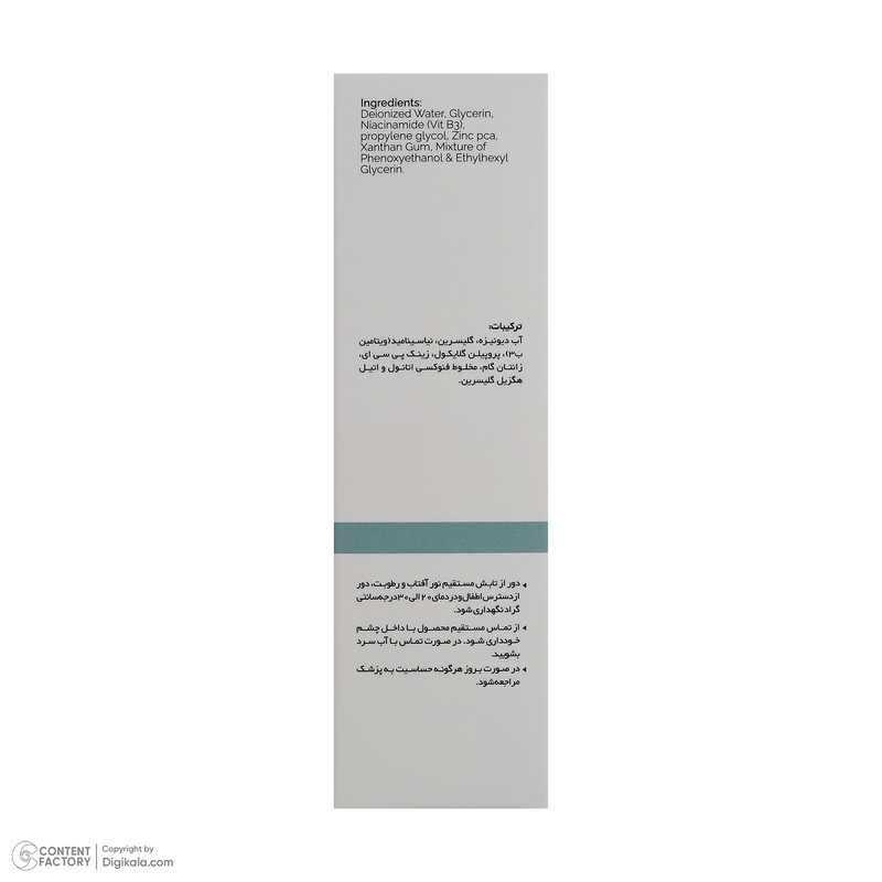از این سرم روی پوست کثیف استفاده نشود. از تماس محلول با چشم خودداری شود.